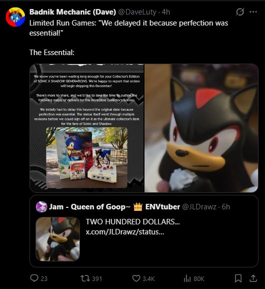 I think Sonic as a franchise is just bad at illustrating "He is not a superhero, he does this shit for fun". Otherwise you wouldn't even have so many american takes that completely drop this or mistranslate it. Nobody makes this mistake with Goku (Anymore) or Lupin or Luffy. Everyone knows that their top priority is the adventure, saving lives just comes with their general decency as people and not part of some moral code.