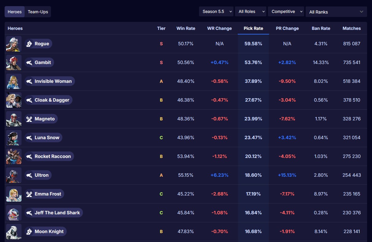 >NewsGone Nutty for Gifts Event Pass: https://x.com/i/status/2001321617889354199Jeff's Winter Splash Festival: https://youtu.be/2DEpKcigA30Season 6: Night at the Museum Official Trailer: https://youtu.be/Aj53c2UxrtcVersion 20251212 Balance Post: https://www.marvelrivals.com/balancepost/20251209/41667_1275551.htmlSeeds of the Gardener Event Pass: https://x.com/i/status/1998792449154809968Rogue Character Reveal: https://youtu.be/-_CwYQQP21QDev Vision Vol. 12: https://youtu.be/abvLlSjm2-0Season 5 Battle Pass: Grand Garden Adventure: https://youtu.be/0EEYlg99xUkSeason 5: Love is a Battlefield Official Trailer: https://youtu.be/hXOUHb6416>StoreStar-Lord's Starcracker, Peni Parker's Snow-SP//dr, and Daredevil's Not Daredevil skins: https://x.com/i/status/2000974432089542971Rogue's Savage South and Rocket Raccoon's Rocket of the Rafters skins: https://x.com/i/status/1998475280659182007Luna Snow's Cherry Delight skin: https://x.com/i/status/1995893222057406562Blade's Restful Recovery and Venom's Gummy Surprise skins: https://x.com/i/status/1993379313408729526Doctor Strange's Bleeker Street Strut and Magik's New Millenia Might skins: https://x.com/i/status/1990502768352600107Gambit's Thieves Guildmaster skin: https://x.com/i/status/1988369897219387549Magneto's Temporal Tyrant skin: https://x.com/i/status/1988388771369304085Wolverine's Dog Brother X skin: https://x.com/i/status/1985738811167440934>LinksHero Hot List: https://marvelrivals.com/heroes_data/Guides & News: https://marvelrivals.gg/Tracker Resources: https://rivalstracker.comMobalytics Page: https://mobalytics.gg/marvel-rivalsFANDOM Wiki: https://marvelrivals.fandom.com/Checkpoint: >>550552972