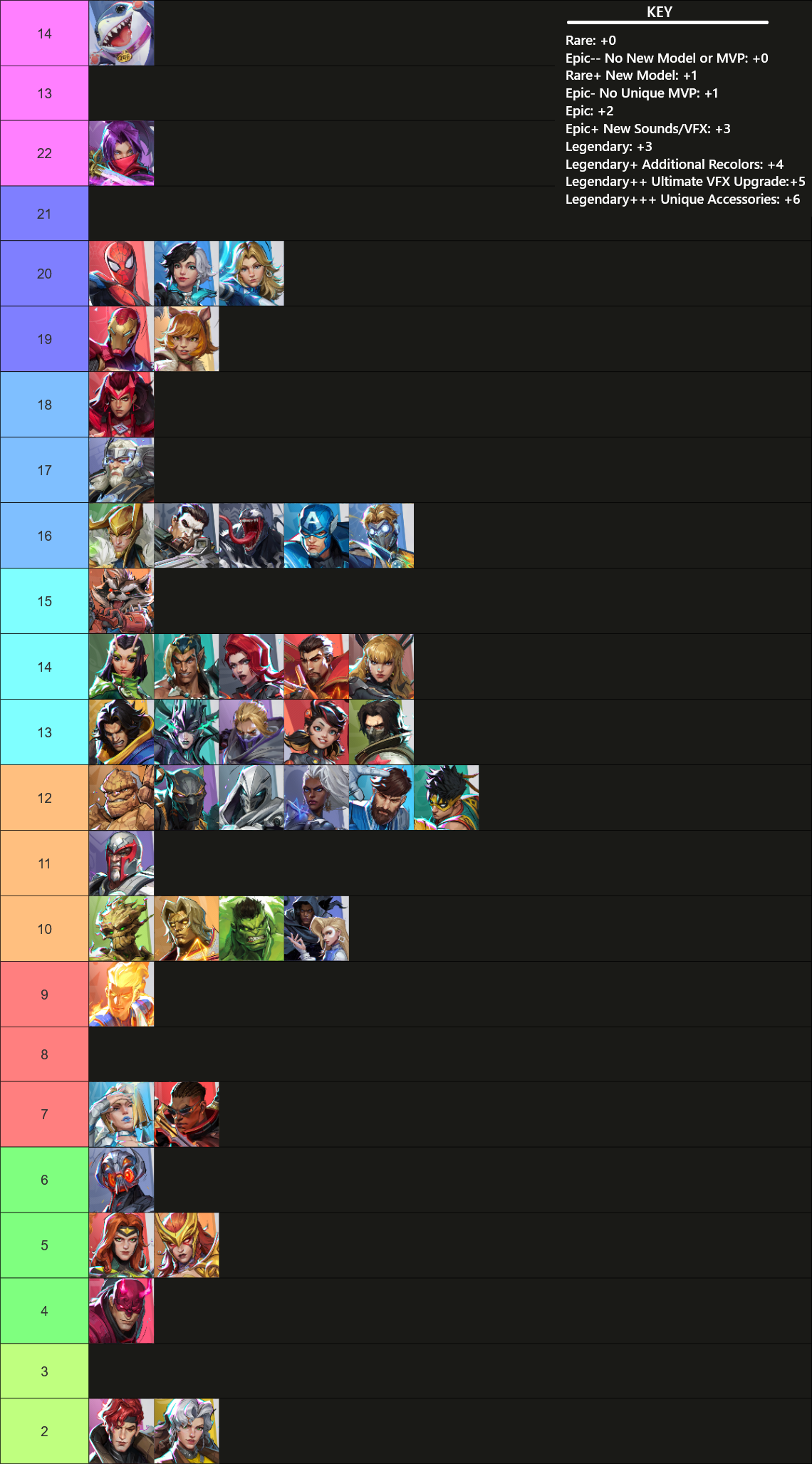 Is there an updated list of leaked characters? I remember there being some datamined like MODOK, Jubilee, Hit Monkey, etc. and others actually appearing in the game somewhere like Ghost Rider, Cyclops, and Hive. I’m considering making a chart displaying all of these and their status but I don’t want to do something that’s already been done.