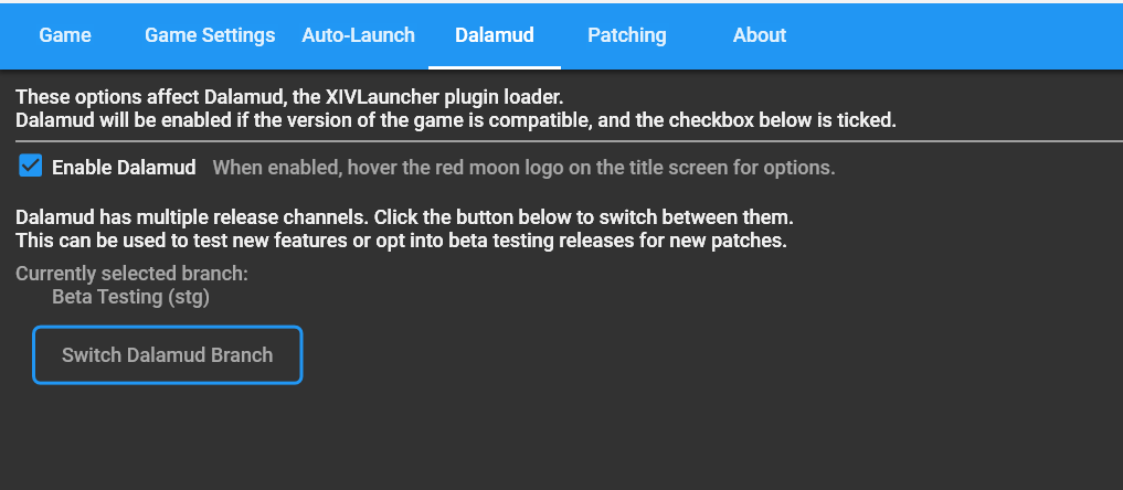 >>550668506>>550668815Here anon, as you open up XIV Launcher you go into Settings, followed by Dalamud.You then put in the key Carbonara and switch Branches to whatever the option is.