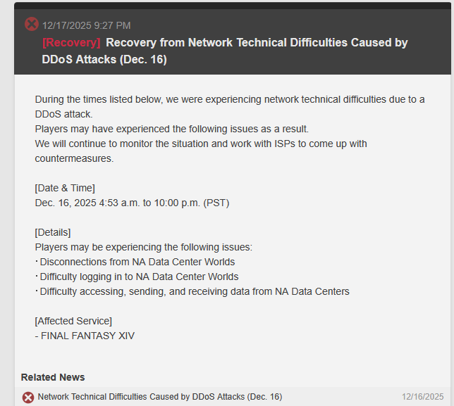 >>550679265the servers haven't gone down at any pointyou just get kicked out of them because of the DDoSif they were going down you wouldn't be able to log back in right away