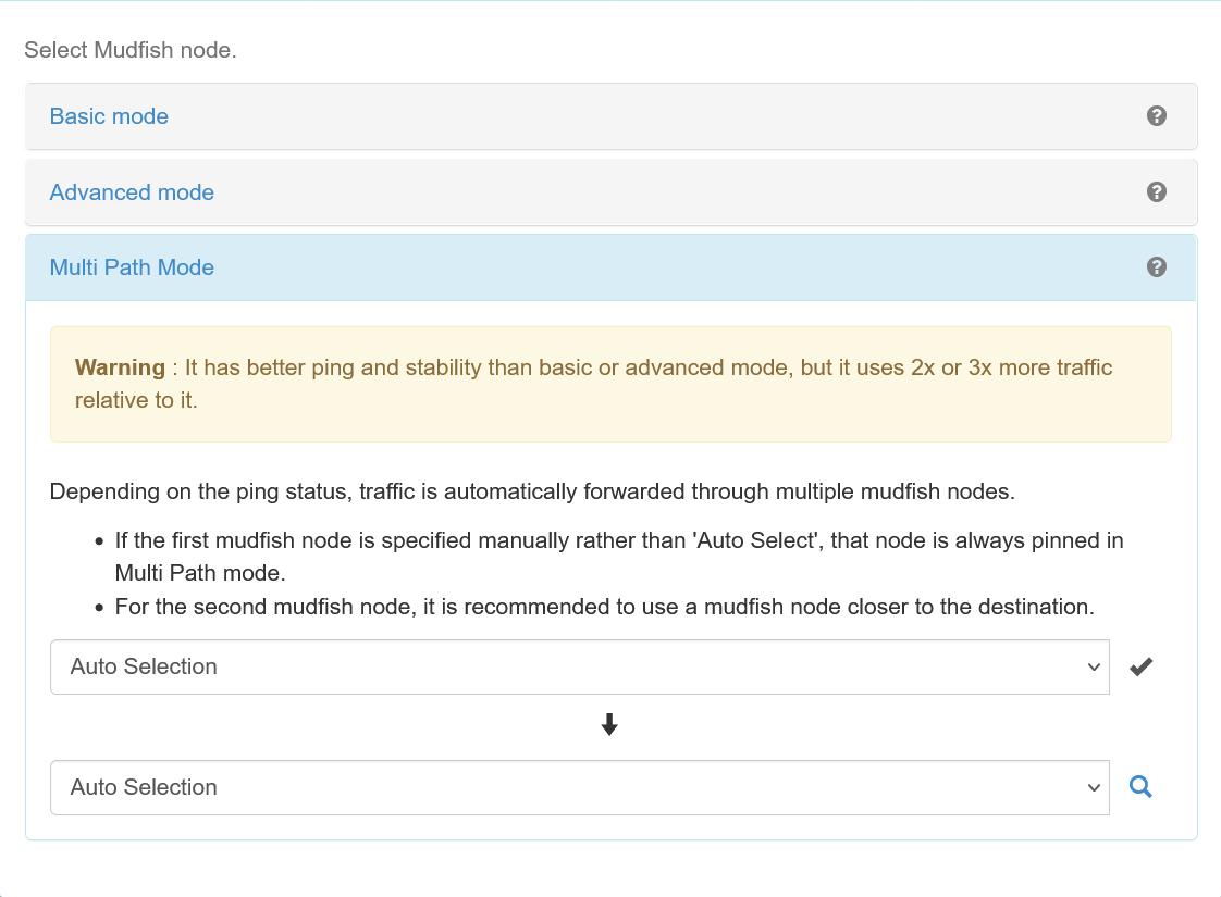 >>550681943There's also this option if you feel like wanting to make sure you are dodging a specific node, it may use a little bit more data than usual, but with how cheap that traffic is, its pretty much negible. Just beware of updates potentially using your data (aka do not enable mudfish to route you till you've updated the game).Also, because of how it works (as a browser tab), each time you restart or start your pc, you have to manually open mudfish.