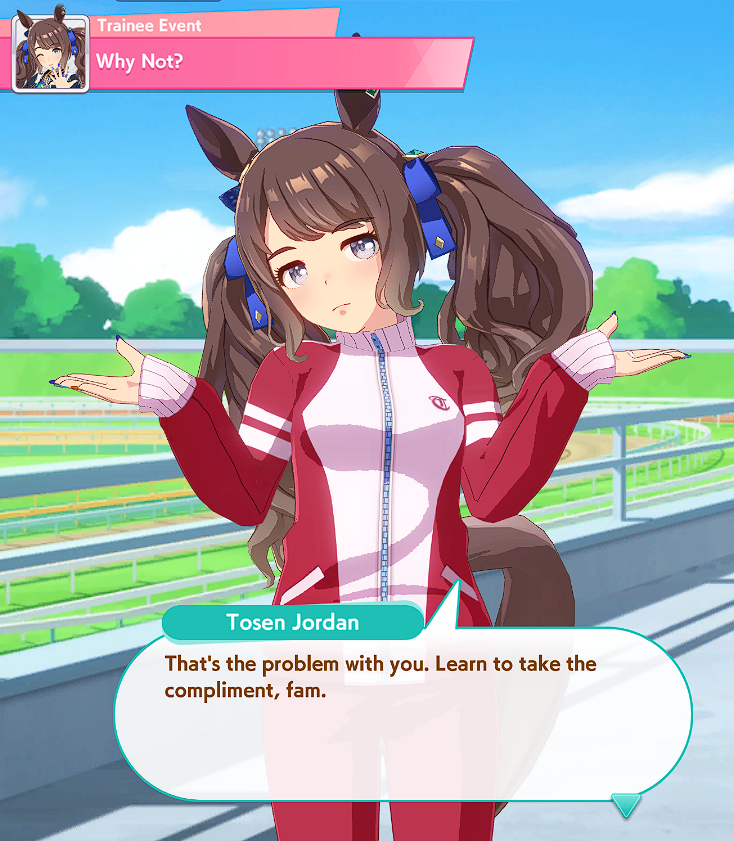 Hello you retarded poorfag cunts. Now that you have Kitasan Black, have you realized having whale decks doesn't automatically equate to some overpowered 16k rated Uma? You still have to get rainbows. You still have to get good events triggering at the right time. You still need 7-9* parents. You will still get dogshit Umas when you risk doing something like 2 Speed cards. You still need to do about a dozen runs before you get that Uma you all cry and bitch about is unfair whale.Anyways you guys are still retarded. Keep losing those CMs.