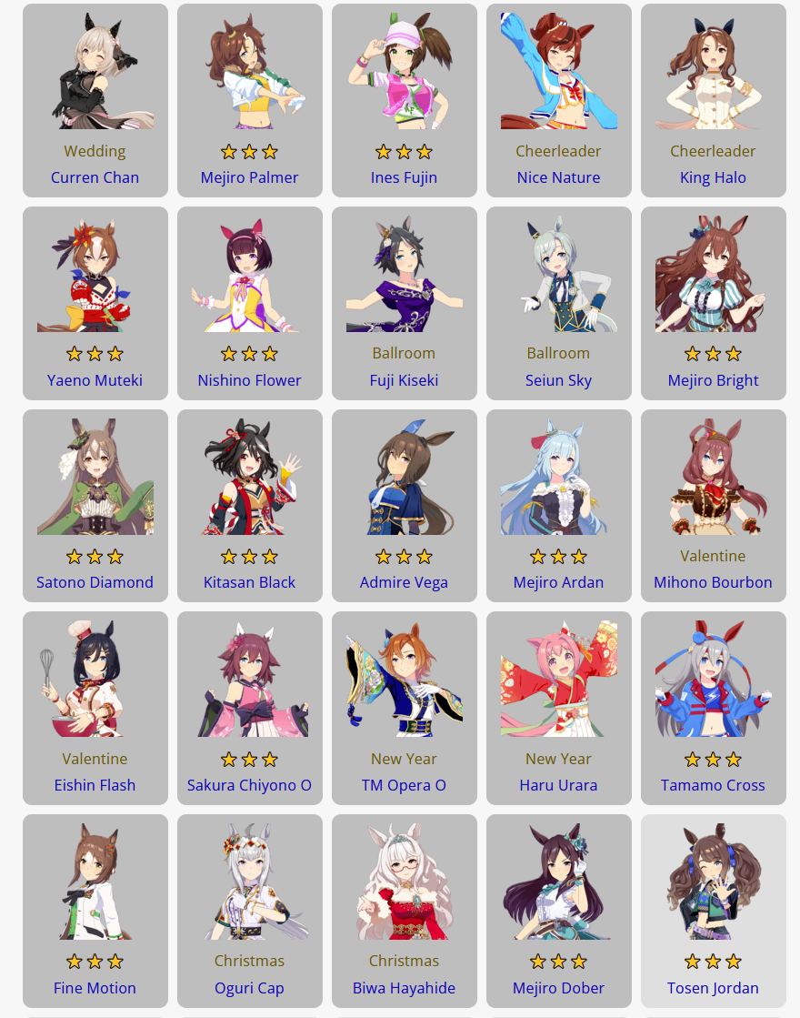 Previous: >>550644654>Global Game NewsLink your account to Cygames iDCurrent Scenario: Aoharu Hai aka "Unity Cup"Current Event: Orchestra in Late AutumnCurrent Rate Up Trainee: Symboli Rudolf 3* [Alt], Gold City 3* [Alt], Tosen Jordan 3*Current Rate Up Support Cards: Curren Chan SSR, Narita Brian SSR, Kitasan Black SSR, El Condor Pasa SSR12/18 - Kitasan Rerun12/24 - Fuji Event12/28 - Scorpio Cup - Tokyo Turf 2000mhttps://umamusume.com/news/100040/https://pages.snep.pw/uma/anni-skill-changes/>JP Game NewsCurrent Rate Up: Oguri Cap 3* [Cinderella Grey] Inari One (SSR)New Scenario "Yukoma Hot Spring" releasedTimeline: https://uma.moe/timelineCygames Webstore: https://webstore.cygames.com/en/umamusume_en/>IP NewsUmamusume Cinderella Gray 2nd season started weekly airings on 10/5>Thread Clubshttps://rentry.co/umaglobalclublistYou must be E3 (20k points) to join a circle. Apply with /uma/ or /vg/ in your profile or post ID in the thread.>All Guides & Resourceshttps://rentry.org/uma26Game databasehttps://gametora.com/umamusume (Click the gear to switch between JP / global server info)A basic guide for newfagshttps://rentry.org/umaglobalFind networks if your region is blocked from the game or clienthttps://www.umavpn.top/93Seiyuu & Concertshttps://rentry.org/umstUma storieshttps://umareader.idsmile.xyz/
