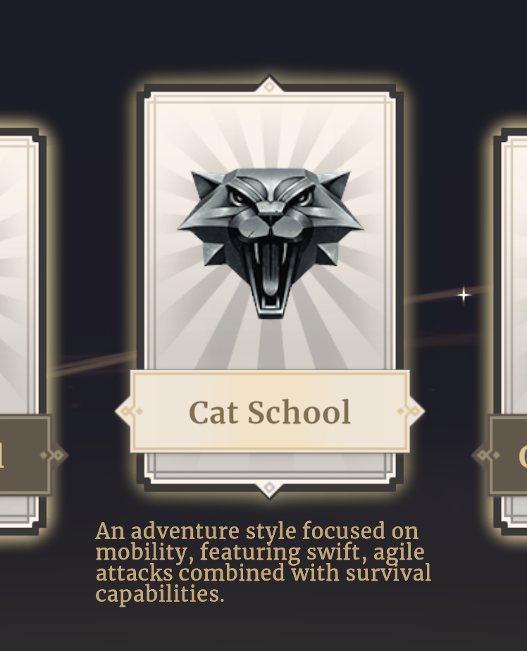 >>550993641You can see a description of each school in the VoD event notice.>Wolf: balanced>Bear: defense/survivability>Cat: mobility/some survivability >Griffon: terrain-focused>Viper: DoTs>Manticore: potions/buffs