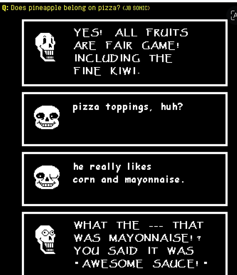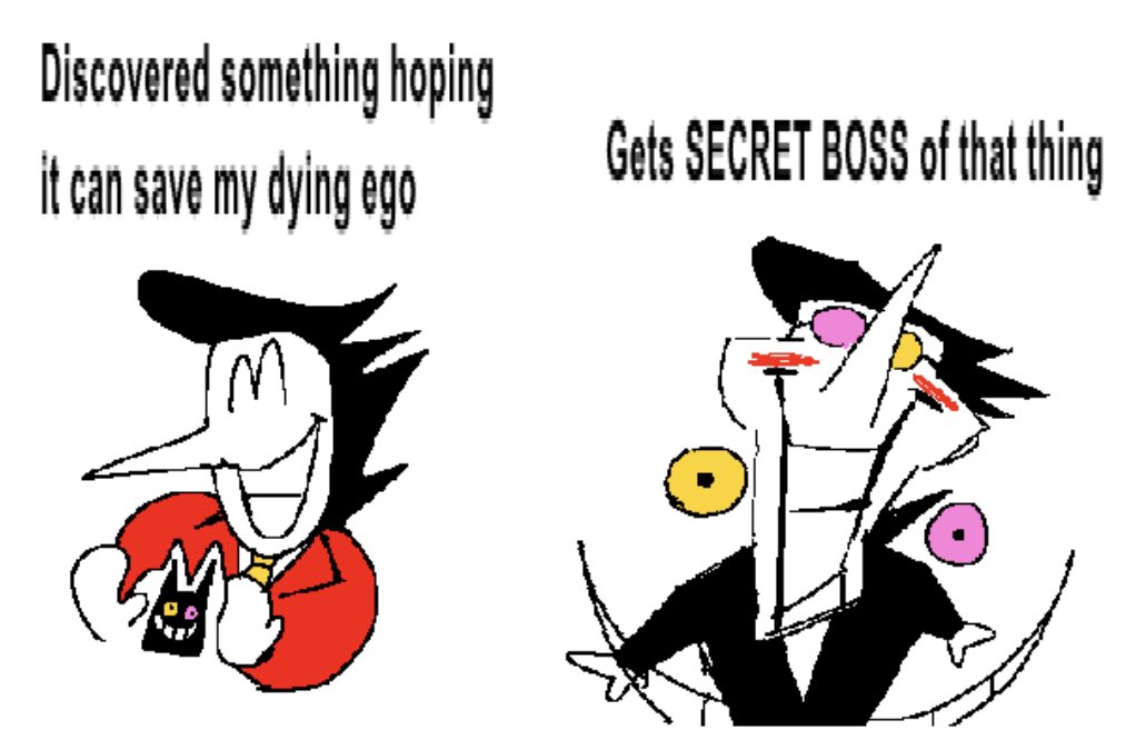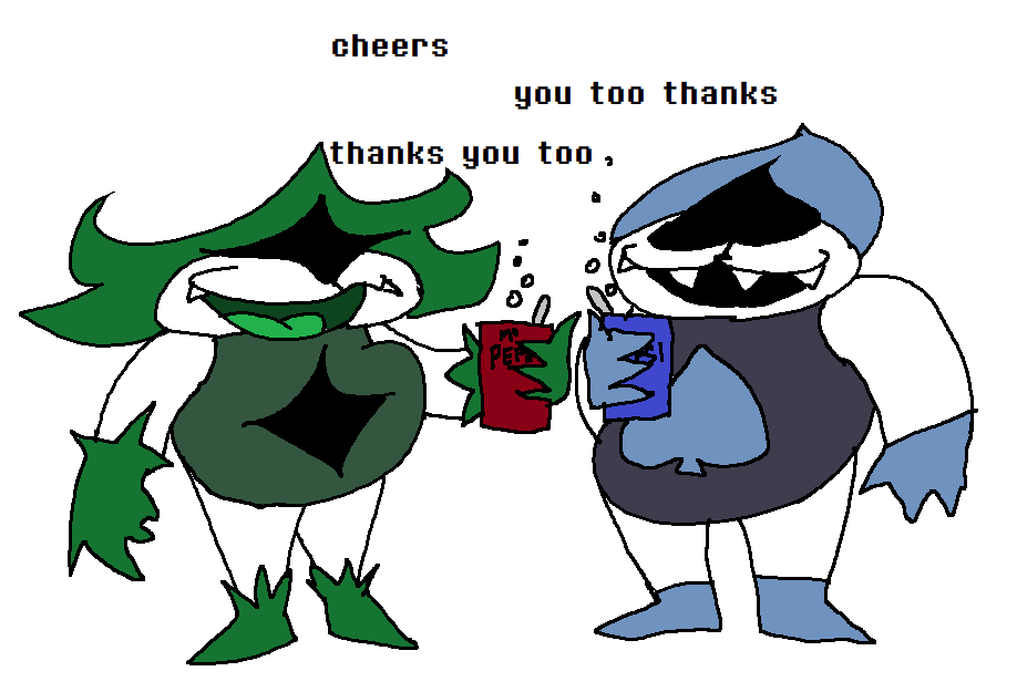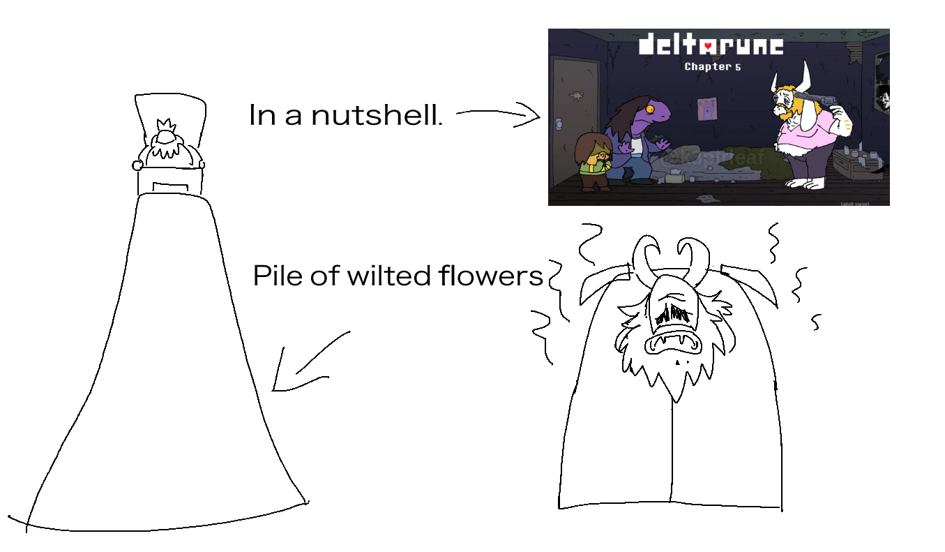 Bad Idea EditionPrevious why did he do it: >>550684958Spoilers ahead, proceed at your own Frisk.-DELTARUNE CHAPTER 1-4>https://store.steampowered.com/app/1671210/DELTARUNE/-The Old Game>https://undertale.com-The Old Game's Demo>https://undertale.com/demo-The New Game>https://deltarune.com-The New Game's Progress>https://toby.fangamer.com/newsletters/>https://deltarune.com/#news>https://www.twitlonger.com/show/n_1sqn3p9-Merch>https://www.fangamer.com/collections/undertale>https://www.fangamer.com/collections/deltarune-Books-Undertale Artbook>https://pastebin.com/1MRmU0Gk-Legends of Localization - Undertale>https://pastebin.com/DkZaXMpi-Extra Content>https://undertaleqa.tumblr.com>https://undertale.com/alarmclock>https://deltarune.com/sweepstakes/>https://toby.fangamer.com/newsletters/-Undertale/Deltarune Text Dumps & Screenshots>https://pastebin.com/WG9u1fvH-Undertale Image Collections>https://pastebin.com/g2JqH6Ba-Booru (newly resurrected, please help tag)>https://utg.vidya.pics/-Recommendbin>https://pastebin.com/fsqd5Sa6-Writebins>Current: https://docs.google.com/document/d/1ZaYVvltQ_Rmf-ggszf1bwmYDW2NUcfpTYU7JzfyMhVE>Old: https://writebin.surge.sh-Comicbin>https://pastebin.com/UJpBYSEE-Fangamebin>https://archive.is/iSiFg-/vg/ League team>https://implyingrigged.info/wiki//utg/-Current whiteboard: https://r7.whiteboardfox.com/76291892-6808-7179-Previous whiteboard: https://r7.whiteboardfox.com/76276914-0209-6733-Magma: https://magma.com/d/QiFH9rWyRh-WorldOfText: https://www.ourworldoftext.com/utg-Wanna change the font?>https://rentry.org/utg-font-Thread Template>https://pastebin.com/rTN8SxAw