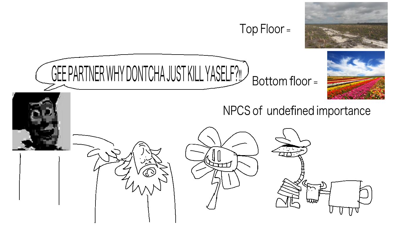 >>550745287Everyone else makes Flower land this beautiful wonderland that asgore secludes himself in, basing it solely off the ground floor of his shop.This fountain is situated in the top floor AKA his actual living space. I imagine his dark world form to be a dumpy shittier version of his UT self. no crown atop his head and wrapped around a smelly cloak that’s more of a bathrobe or stained shower curtains.This section would be story based and you would get all the insights on the dreemurr family and maybe even the circumstances around what happened to dess.
