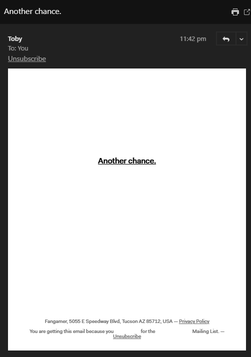 >>550776083Those emails need to be subscribed to the newsletter as well.