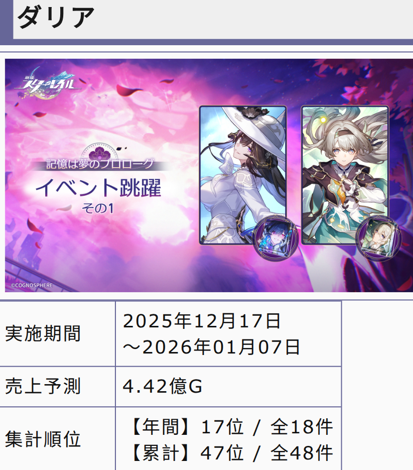 >>550819313Cyrene made 24g, same as firefly at the game's very peak when it was flooded by genshinfags that didn't leave yet. And Herta got massive shilling with personal VU, being one of the main characters and several animations since Penacony.