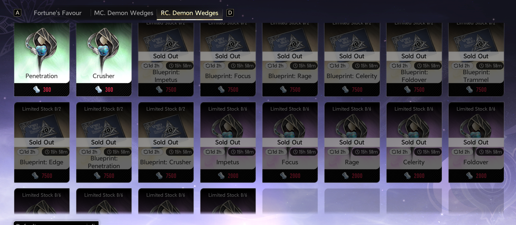 >>551004487Crazy idea, maybe the maze shop shouldn't be limited to 2 fucking wedges a month when players need at least 10 and possibly more later when they add +12