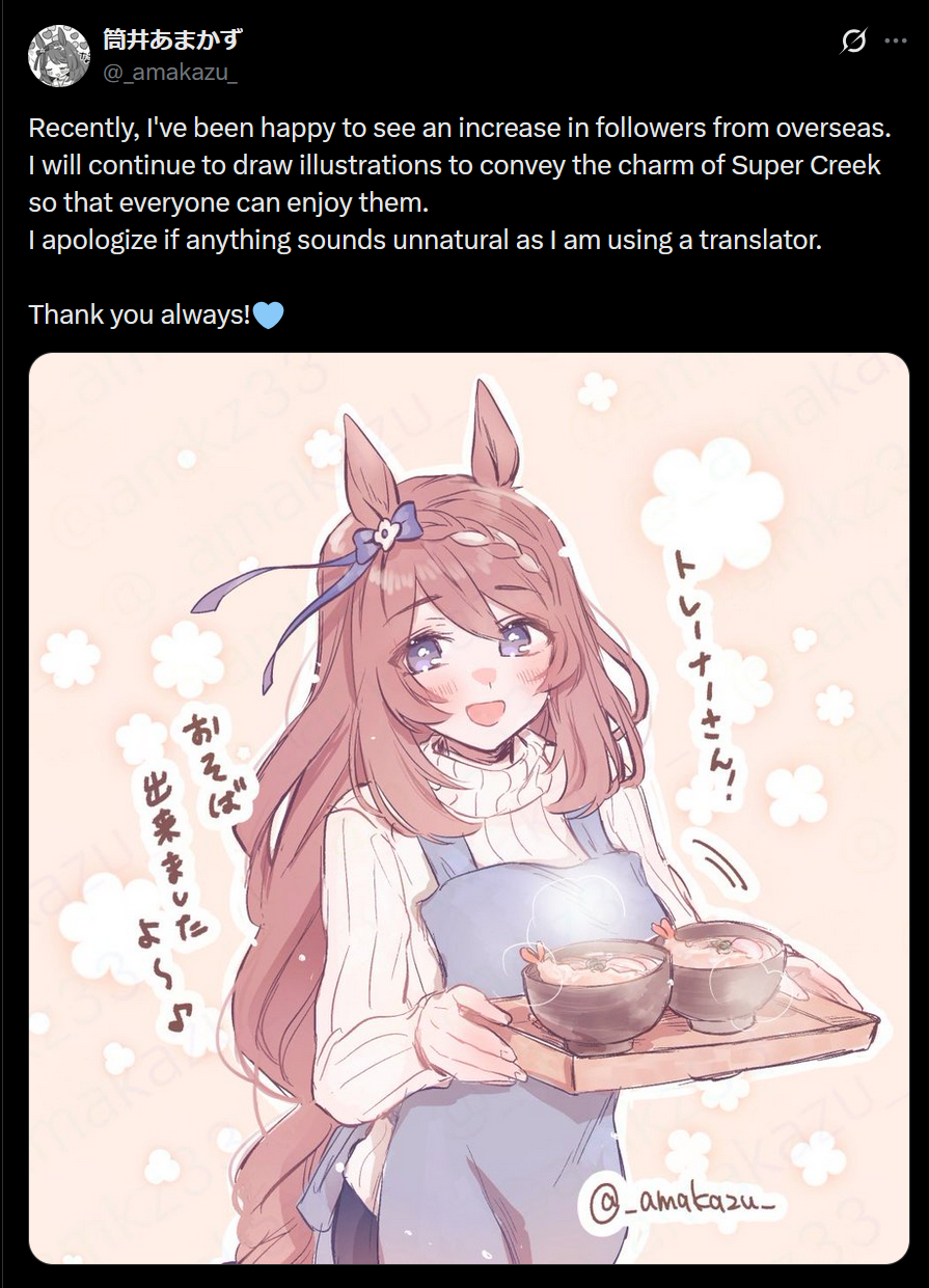 Previous: >>550811957>Global Game News Link your account to Cygames iDCurrent Scenario: Aoharu Hai aka "Unity Cup"Current Event: Orchestra in Late AutumnCurrent Rate Up Trainee: Symboli Rudolf 3* [Alt], Gold City 3* [Alt], Tosen Jordan 3*Current Rate Up Support Cards: Curren Chan SSR, Narita Brian SSR, Kitasan Black SSR, El Condor Pasa SSR12/18 - Kitasan Rerun12/24 - Fuji Event12/28 - Scorpio Cup - Tokyo Turf 2000mhttps://umamusume.com/news/100040/https://pages.snep.pw/uma/anni-skill-changes/>JP Game News Current Rate Up: Oguri Cap 3* [Cinderella Grey] Inari One (SSR)New Scenario "Yukoma Hot Spring" releasedTimeline: https://uma.moe/timelineCygames Webstore: https://webstore.cygames.com/en/umamusume_en/>IP News Umamusume Cinderella Gray 2nd season started weekly airings on 10/5>Thread Clubs https://rentry.co/umaglobalclublistYou must be E3 (20k points) to join a circle. Apply with /uma/ or /vg/ in your profile or post ID in the thread.>All Guides & Resources https://rentry.org/uma26Game databasehttps://gametora.com/umamusume (Click the gear to switch between JP / global server info)A basic guide for newfagshttps://rentry.org/umaglobalFind networks if your region is blocked from the game or clienthttps://www.umavpn.top/93Seiyuu & Concertshttps://rentry.org/umstA storyhttps://umareader.idsmile.xyz/