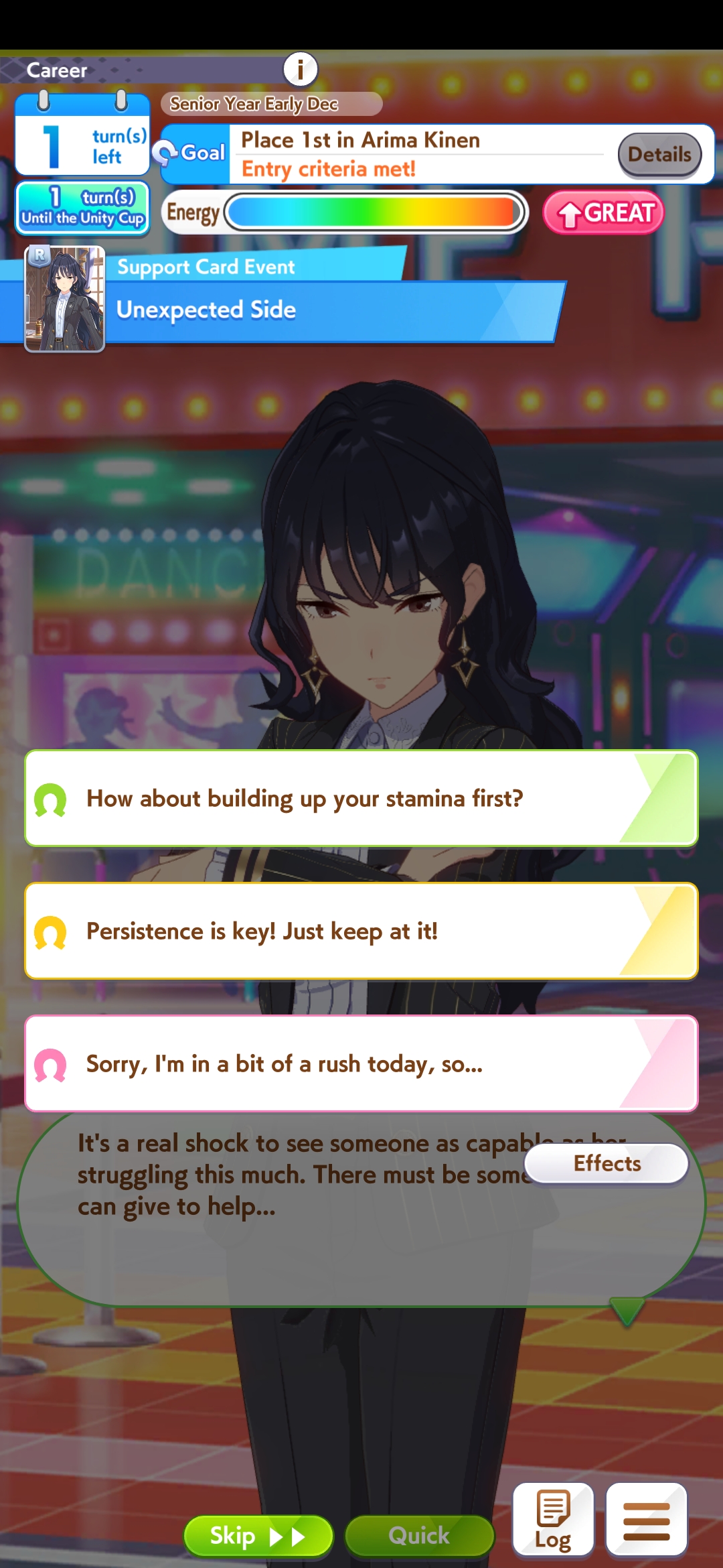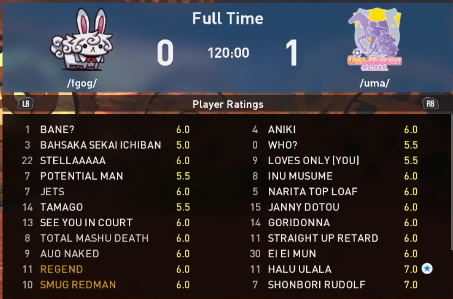 Y’know, thinking about Unity Cup, it’s kind of outright impressive that we manage to train up like 20 or so Umas to a moderate level over the course of three years.