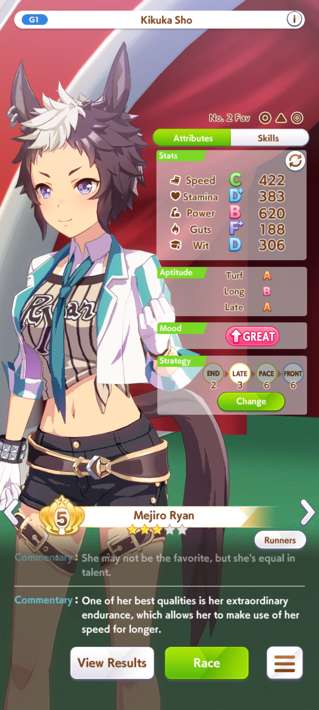 >>550862687Ignore what that other guy said. Urara is meant to be genetically altered. Her career breaks your heart and gives you this goal immediately. Her skillset works better for a long racer. Cygames is telling you that you are the only one who can help her fulfill her destiny.