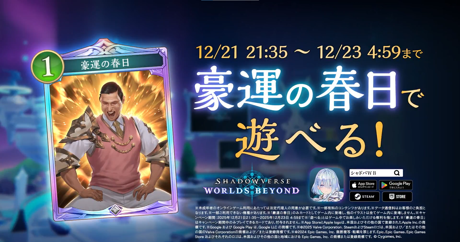 >NewsGrand Prix: Skybound Dragons Take Two Cup! (Dec. 19th, 6 am UTC)https://x.com/shadowversegame/status/1993160213491335414Shadowverse Channel Livestream - Holiday Special! (Dec. 23, 10 am UTC)https://shadowverse-wb.com/en/news/detail/?id=01KCH4B2XQX2Z6ED01QM6WV25Y>4th Card Set: Skybound Dragonshttps://shadowverse-wb.com/en/cards/pack/skybound-dragonshttps://www.youtube.com/watch?v=RHb3NBZDOXE>Resource Guide (decks, tier lists, guilds, and leader trailers)https://rentry.org/svg-resourcesOfficial website & deck portalhttps://shadowverse-wb.com/en/https://shadowverse-wb.com/en/deck/Shadowverse Animehttps://anime.shadowverse.jpShadowverse Evolve TCGhttps://en.shadowverse-evolve.com//svg/'s card & leader database and deckbuilder (classic)https://svgdb.meShadowverse: World's Beyond Card Databasehttps://mhmkhlrdn.github.io/WBGDB/SiteLast Showdown: >>550699827