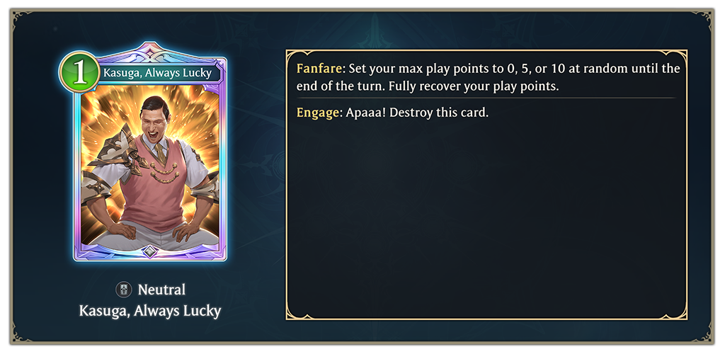 This will be a rune card in 2 more sets. But it wont be random cost random effect it will be 1pp do everything listed.