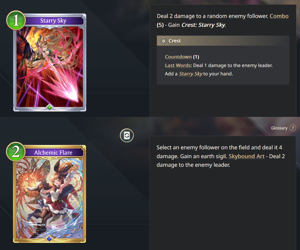 Starry Sky needing combo fucking 5 makes it pretty obvious that it wasn't supposed to be a crest and was supposed to just reload into your hand and deal 1 damage immediately. It takes a special kind of retarded to make it a crest that deals damage on your next turn. Not even the opponents turn so if the crest ever put them in any kind of danger they can just heal up before it deals damage.