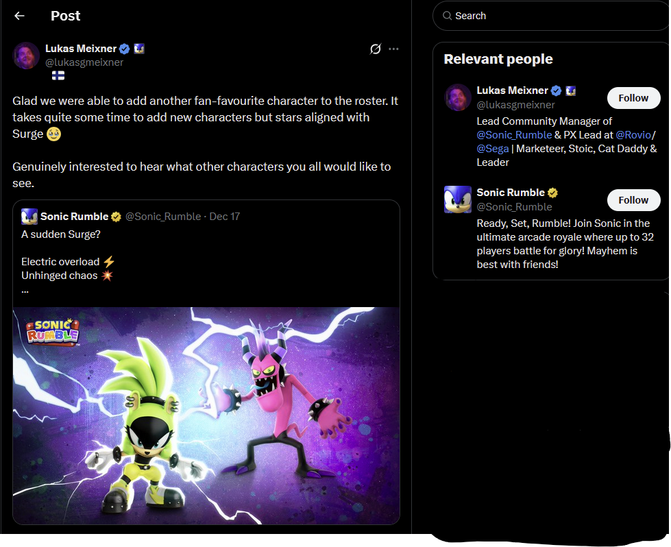 Sonic characters for this feel?https://youtu.be/xnuAi18ozr8