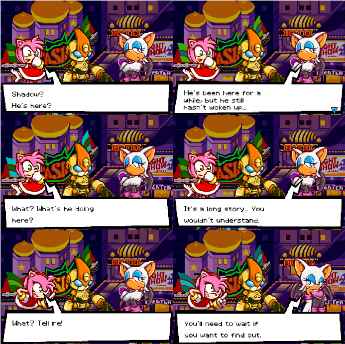 >>550910650Dude Shadow only has conversations with like 3 characters in Shad05 and Rouge isn't one of them