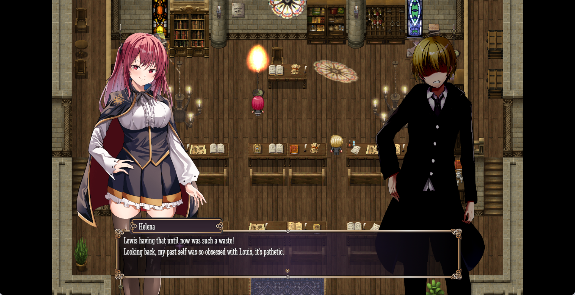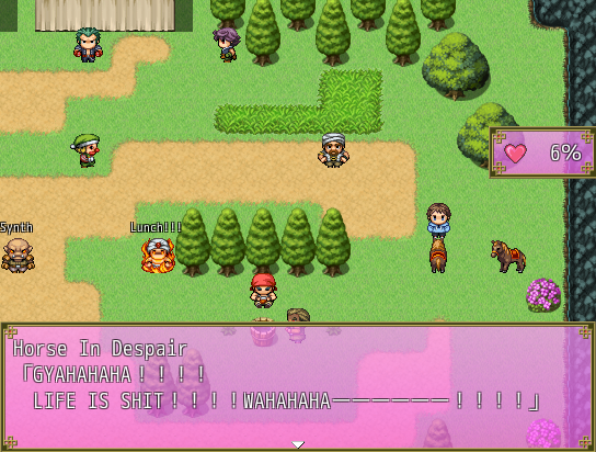 >>550894842>>550897035While the MTL for Unholy Maiden can be kind of fucky at points, that's not the biggest problem. I've played bunch of RPG Maker games, both in English and Japanese... and while I do appreciate how much stuff there is, the world is just not set together in a sensible way.It's very hard to put together for mental map even for the city, and first floor of the dungeon feels like random rooms connecting to each other. The shortcuts are great and implemented well, but fuck, it's hard remembering what leads where.Then second floor has poison swamp where you take damage if you walk on it... and one of the seals required for progression is past broken bridge that you don't see other side of.I like the game, but it's also making me appreciate games which actually have maps which are put together well.>>550896987Fair, that works.