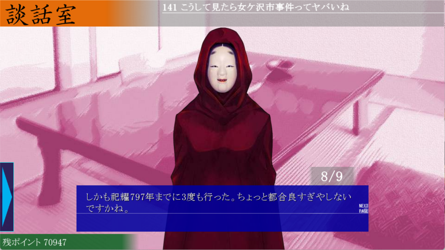 Finished Episode 2 (Downfall) of Mamiya last night. That ended on a truly great twist that I did not see coming. It was initially totally baffling. But the game then explains it in a very unique way using its credits sequence. Even after that it took me a few minutes to put it all together, e.g. what exactly pic related was referring to. But once I gave it some thought everything clicked and a lot of things made sense.There had been several things bugging me about this particular character, for most of the game really, but I wasn't able to come to any solid conclusion. But after seeing the twist I was able to remember at least one substantial clue from earlier in the game; you'd have to be reading very attentively in order to recognize the inconsistency, though. Anyway, this is a game that rewards you for reading carefully and paying attention, which I appreciate.Going on to Episode 3, a few questions remain (I'll give my theories)1. Who/what is Mamiya?I think that Mamiya is the Spectator imprisoned in the Library, and the story Natsume is interacting with is the story that the Spectator decided to interfere with.2. How did Natsume die?No clue. But I'll let this slide into my theory for the next question.3. Who did Samejima target after he became MAMIYA?Since he didn't target Suou it had to be someone else. My guess is that it was actually Natsume. Natsume knew Suou as a child so that would give him a possible connection to Samejima, and could also explain why Natsume died. We know Natsume didn't have a particularly normal life, everything points to him being rather lonely, so I think that would create an opening. But he'd remember, right? Not necessarily, because Natsume's memories aren't complete, having lost some when he passed the River of Oblivion (for example he doesn't remember how he died).Anyway, I'm very excited for Episode 3 (Doomsday Dreams).
