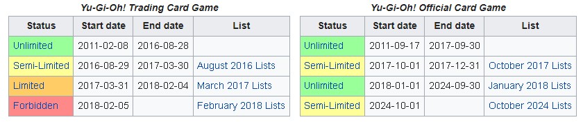 >>550947425>Unlimited>Semi-Limited>Limited>ForbiddenMy hero.