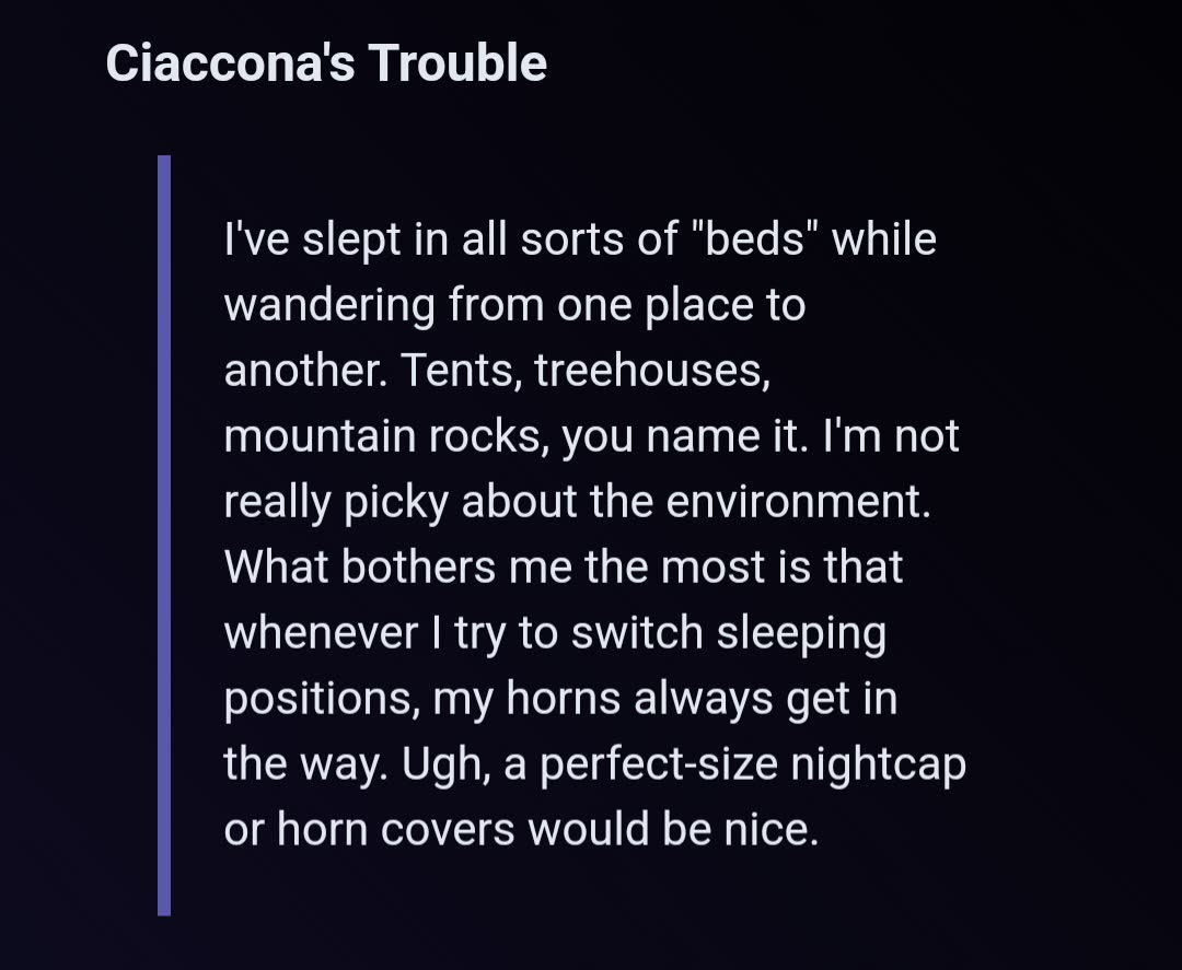 >>551013870She's not sleeping with anyone in those "beds"she's just talking about being a traveling bard that doesn't always have a hotel or home to sleep in so she finds what she can to rest. She's not whoring around, stop being weird.