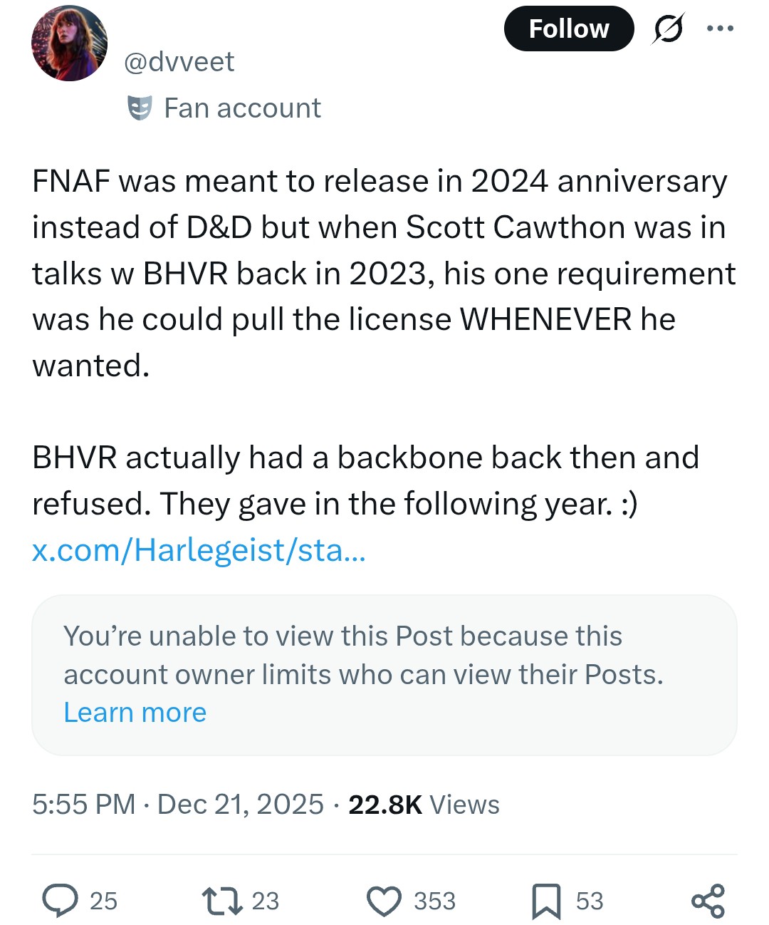 Christmas Chicken EditionPrevious Thread>>549895314https://arch.b4k.dev/vg/thread/549895314>Scott's Twitterhttps://x.com/FNAF_ScottGames>Official Site:http://scottgames.com/>Youtube Channelhttps://www.youtube.com/@animdude>Steamhttps://store.steampowered.com/search/?publisher=ScottGames>Gamejolthttps://gamejolt.com/@realscawthon/games>Moviehttps://www.amazon.com/Five-Nights-Freddys-Blu-ray-Digital/dp/B0CLQRXQNF>Five Laps at Freddy'shttps://store.steampowered.com/app/3078140/Five_Laps_at_Freddys/>Five Nights at Freddy's: Into the Pithttps://store.steampowered.com/app/2638370/Five_Nights_at_Freddys_Into_the_Pit>Books:https://www.amazon.com/Scott-Cawthon/e/B019N2PDJ8>Booru:http://5naf.booru.org/>Writing Archive:https://justpaste/ dot it/5NAF_Writefag_Archive>Backup:https://drive.google.com/drive/folders/1yPi-19kl2eJgPYRCMKai0ZjoYZaQvqPK>Voice Archive:https://drive.google.com/drive/folders/1sZv_a-GEYALjmO3Rbf7rF1fIh92nYYxi?usp=sharing
