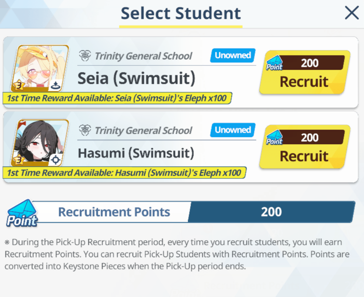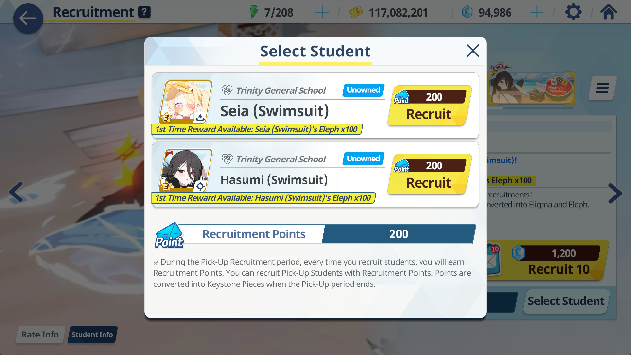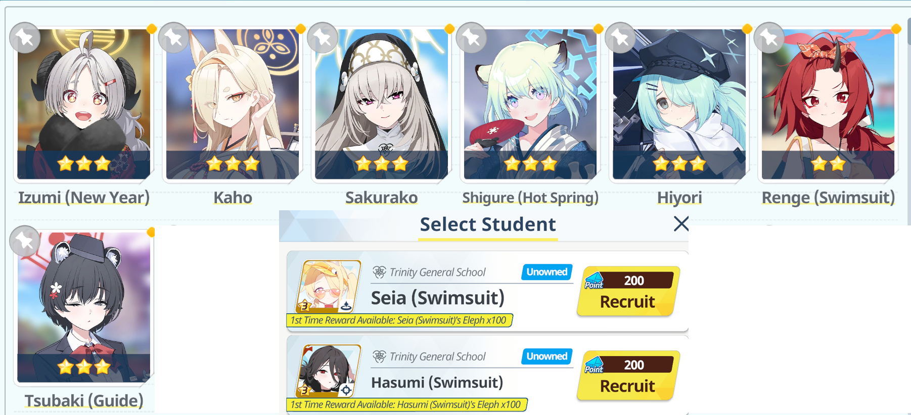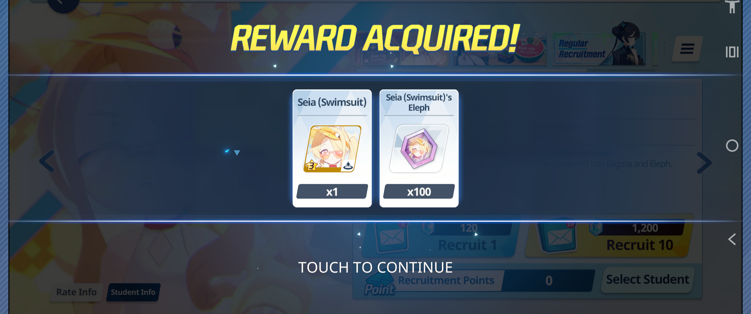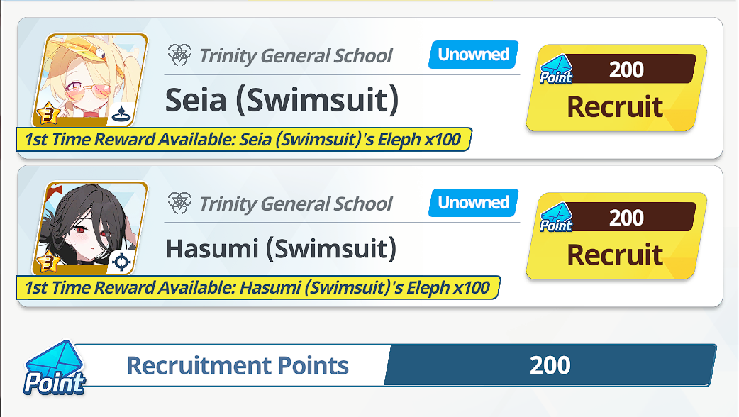 >100 free rolls>nothing>roll 40 times>Seia Hasumi and RabbitOk Arona I forgib