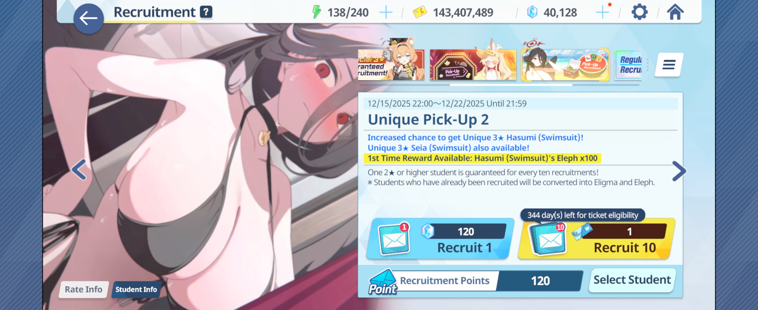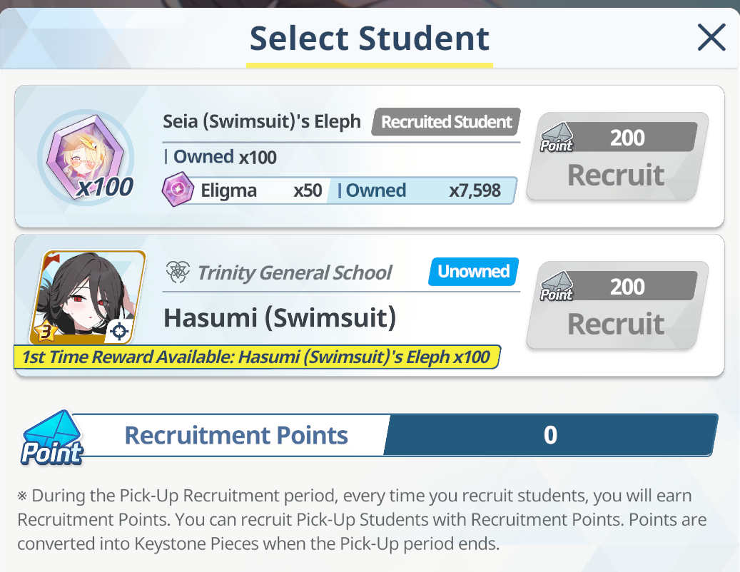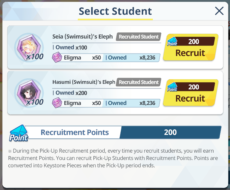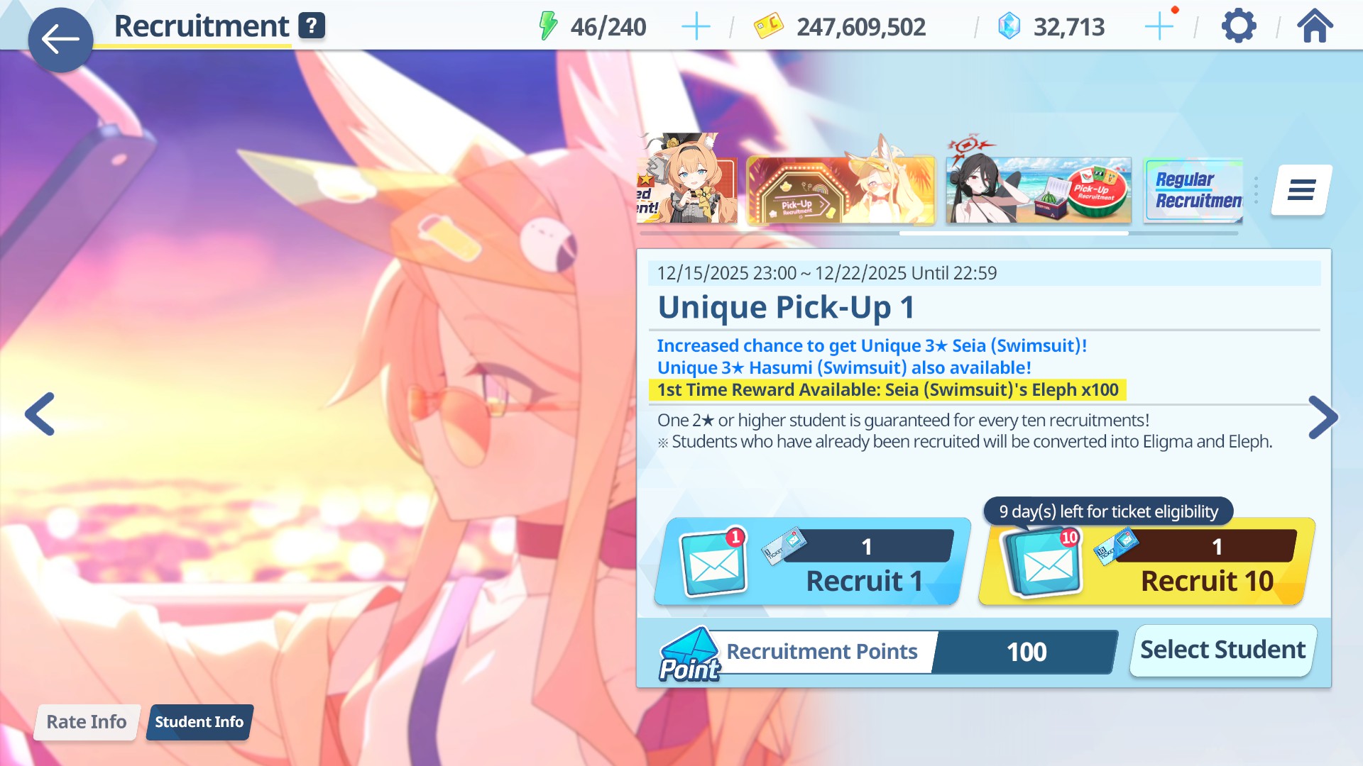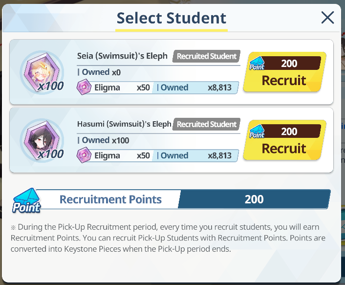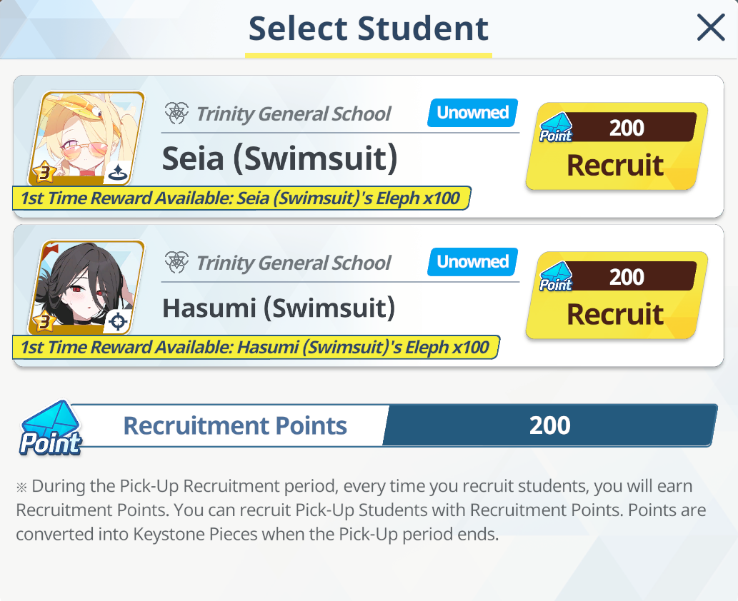 >100 free rolls>nothing>roll 40 times>Seia Hasumi and RabbitOk Arona I forgib