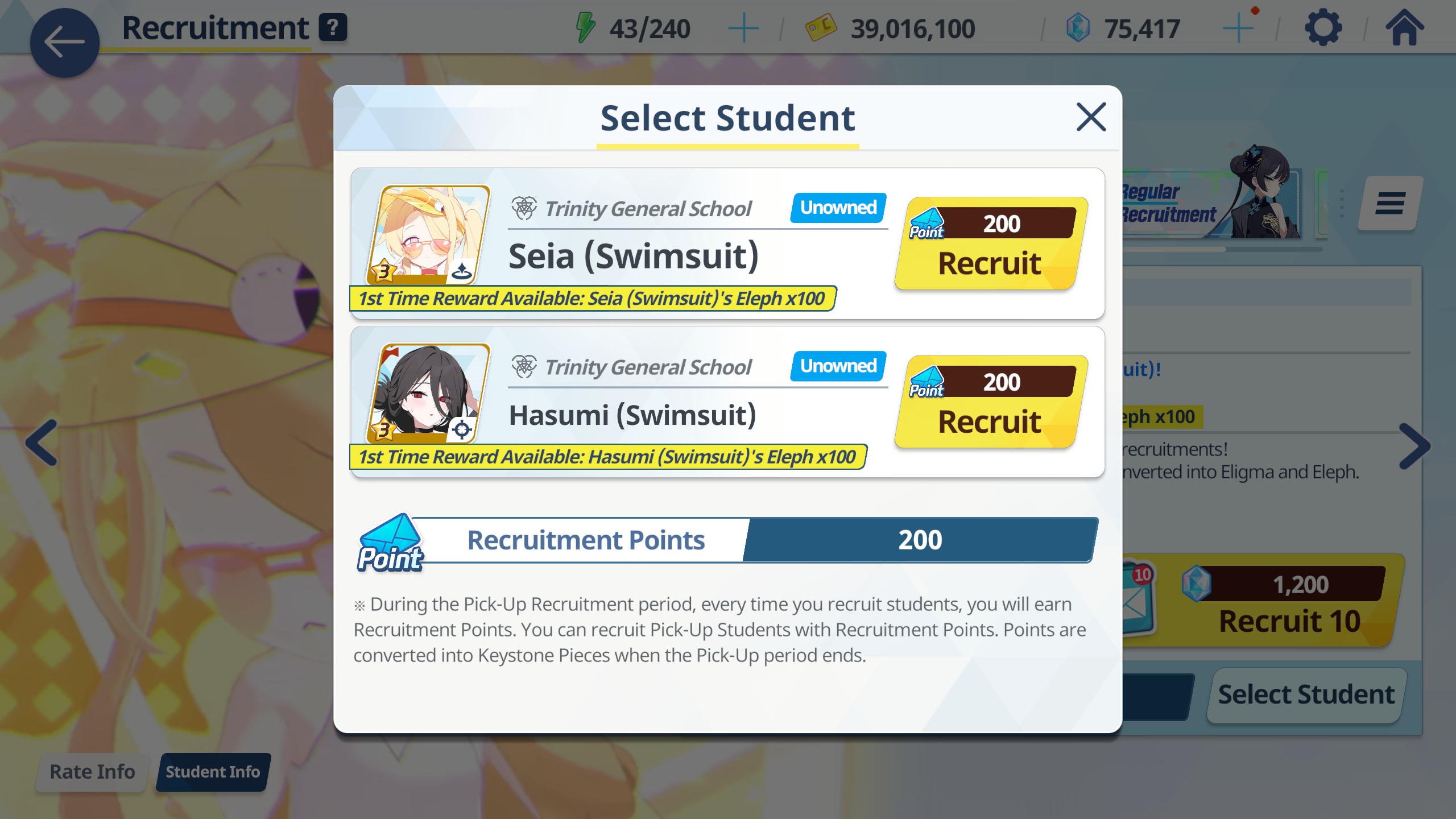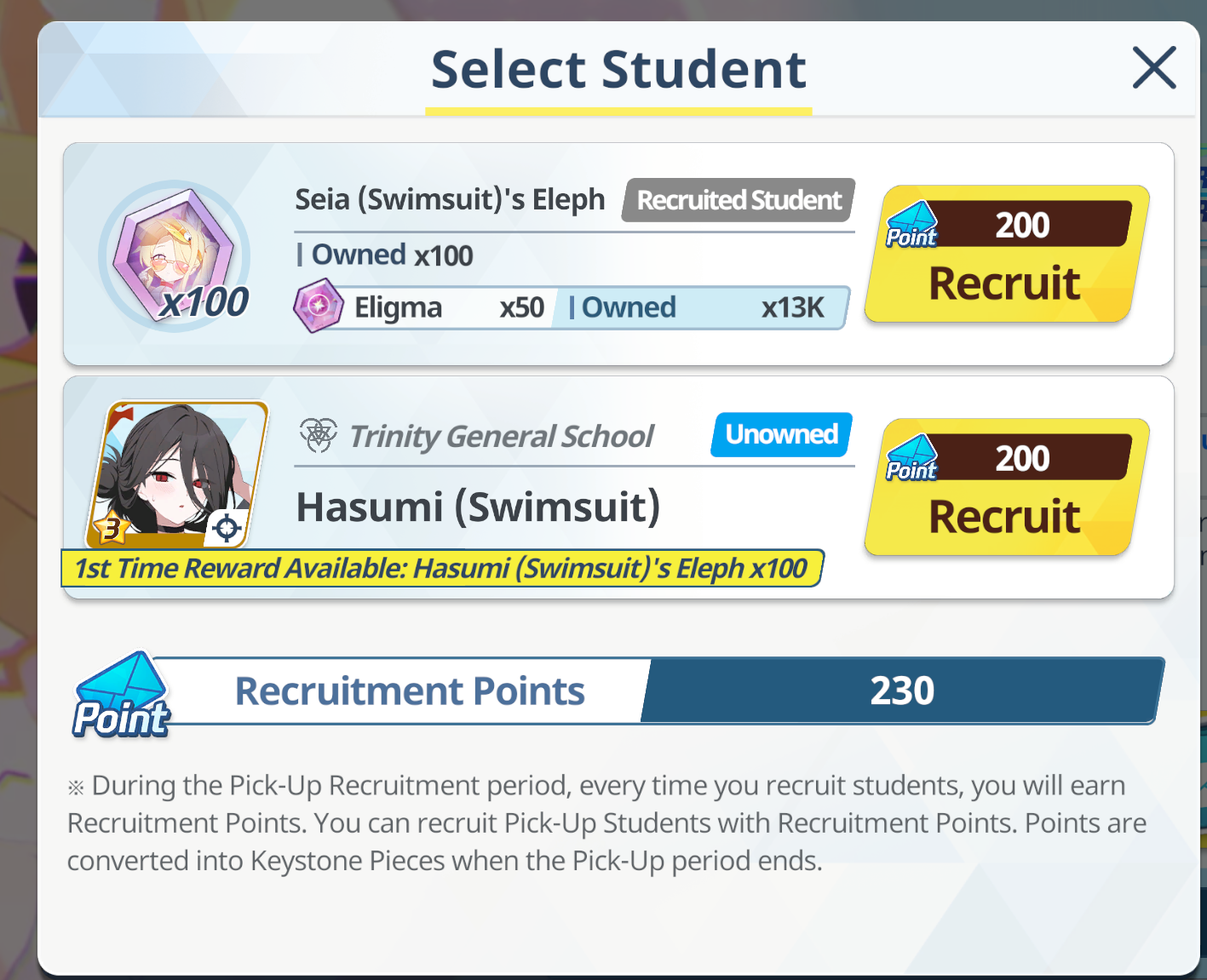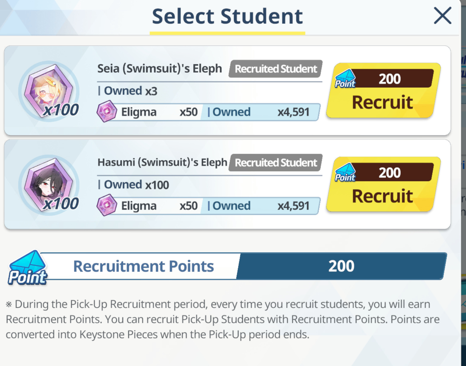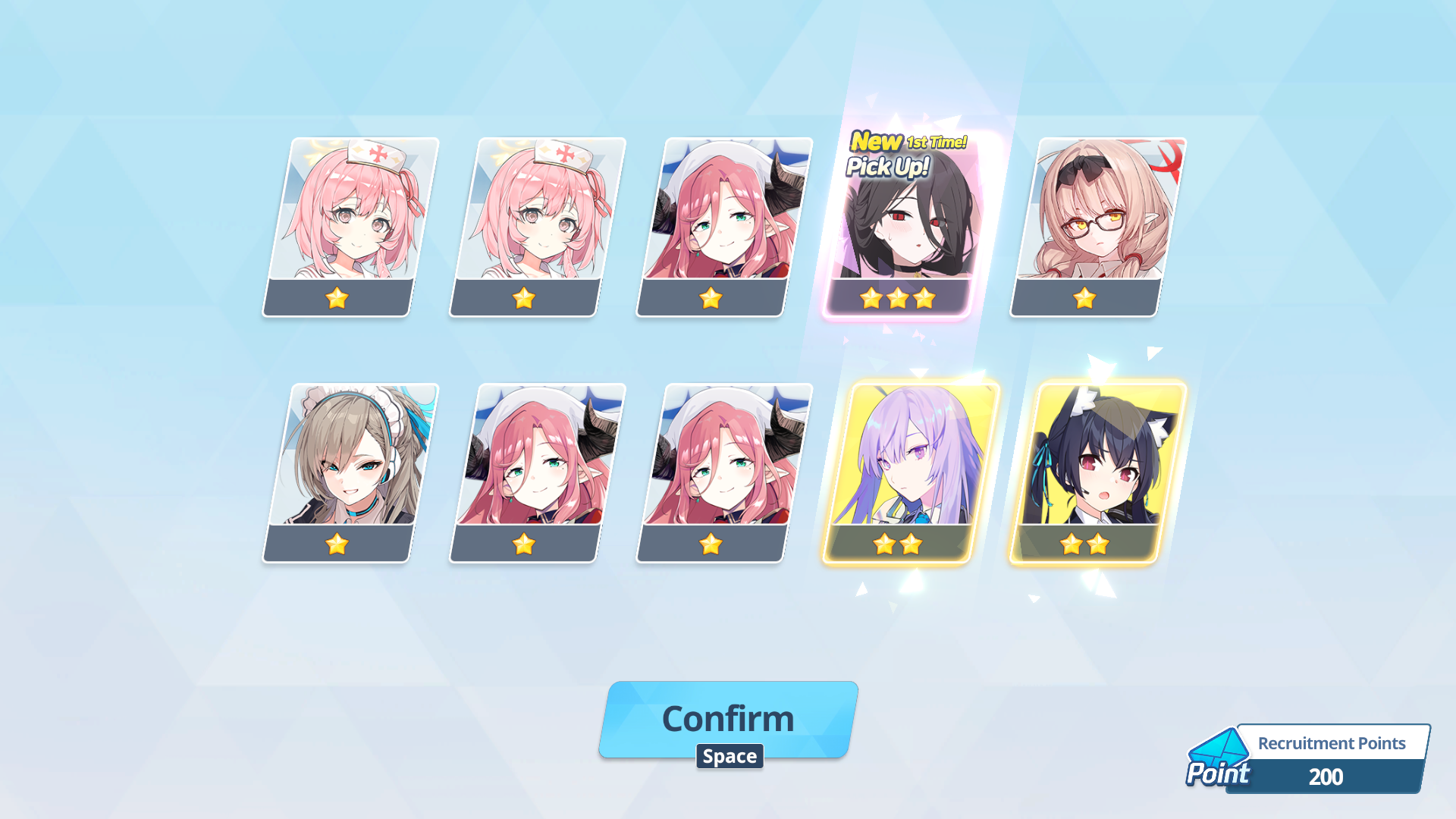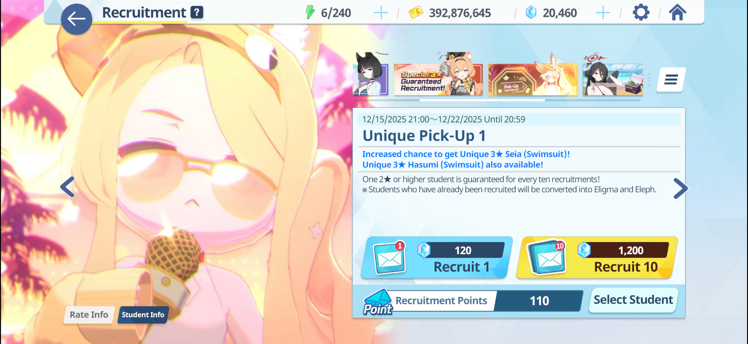 >100 free rolls>nothing>roll 40 times>Seia Hasumi and RabbitOk Arona I forgib
