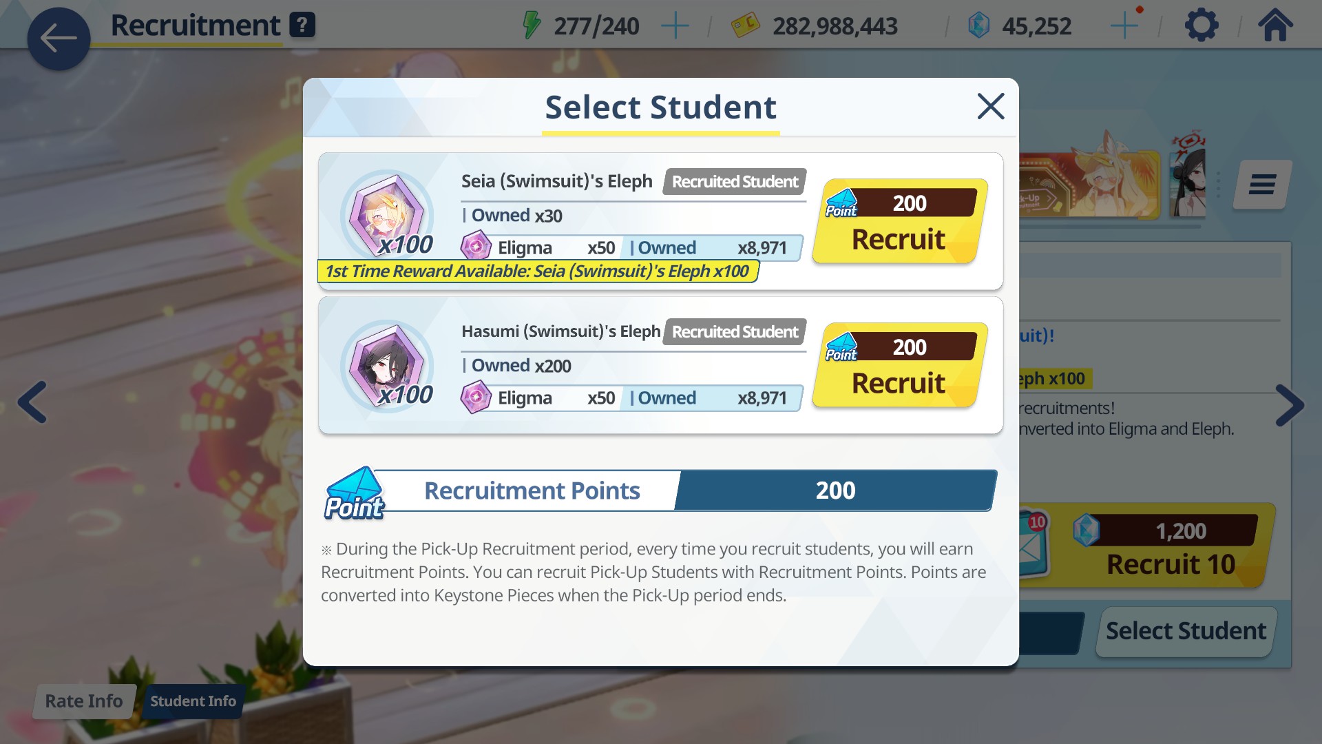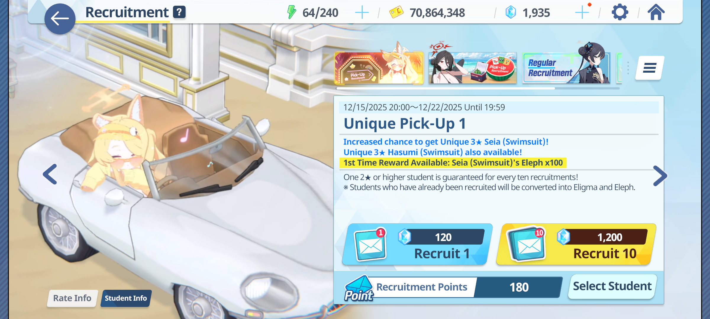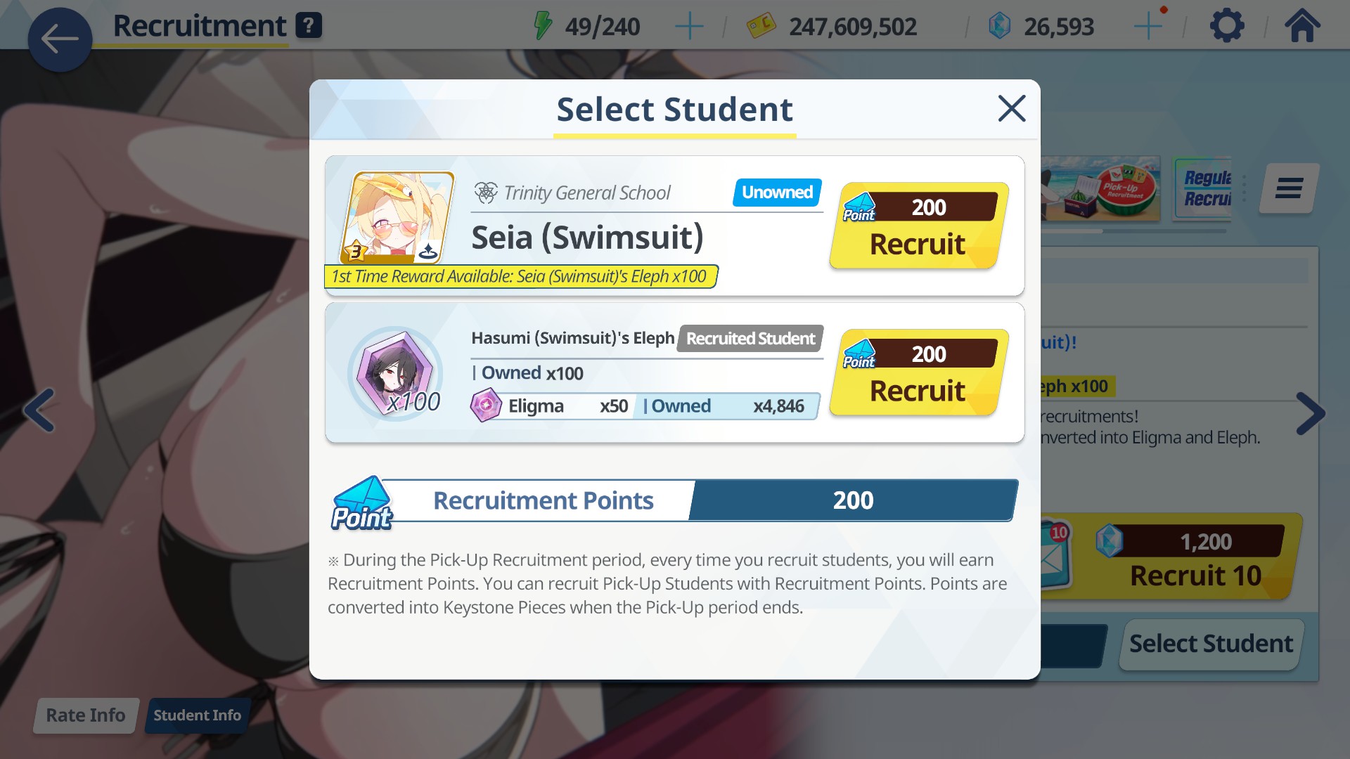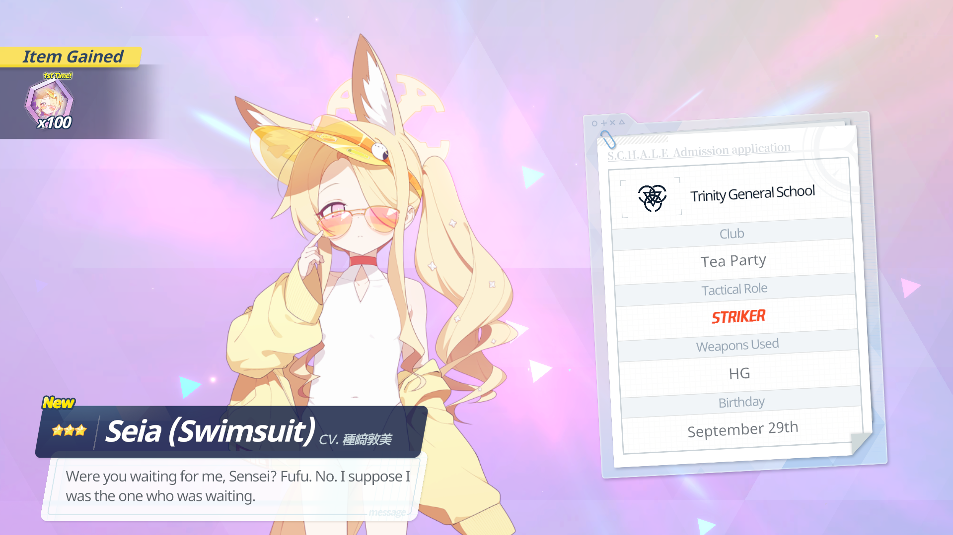 >100 free rolls>nothing>roll 40 times>Seia Hasumi and RabbitOk Arona I forgib