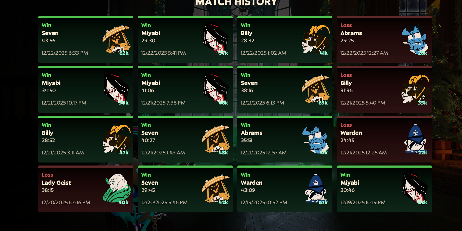>Everyone is on Christmas leave>Weekend no less>Get a MASSIVE snowball update>24k playersIm so glad this game is over with. I find it funny some retards quit their day job to go full time on becoming Deadlock content creators.