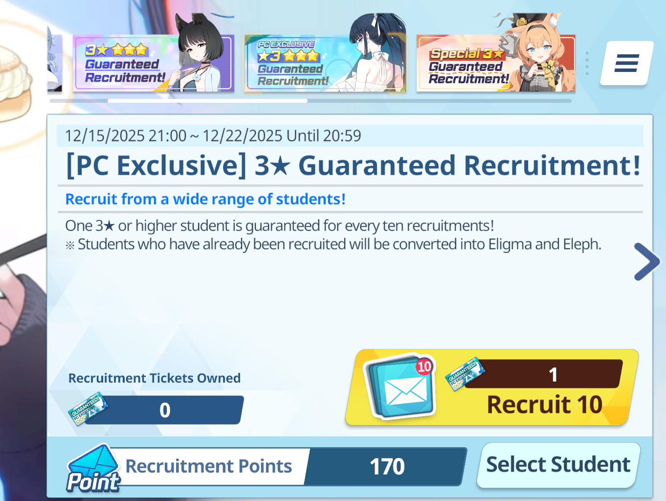 So le me get this straight>guarenteed recruitment is literally just a guarenteed draw of all non-limited banner characters before this event from start of the game to hyakki swimsuits>PC exclusive seems to be the same but only for recently released alts and not everyone>Special is for all limitedsIs that right? Are any of these actually worth it?