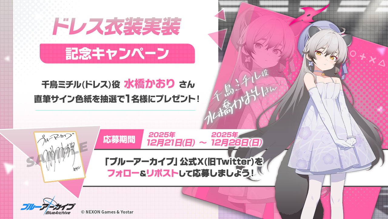 Previous Thread: >>551023067>Guides, Resources and useful links:https://rentry.org/bagguides>/bag/Circles/Clubs/Friends:https://rentry.org/holdingthebag>4koma, Manga, Side Content, PVs & Shortshttps://rentry.org/bacontent>>(JP) – JST>Banners:>12/24 After Maint – 1/17 10:59Tsukuyo (Dress)Michiru (Dress)>News:5th Anniversary Website: https://5th-anniversary.bluearchive.jpPatch notes: https://bluearchive.jp/news/newsJump/609>Events:Balancing Schale's Books with the General Student Council – 12/17 11:00 – 12/24 10:59An Unconcealed Path: Fashion Show Escort Mission! – 12/24 After Maint – 1/17 10:59>Content:Total Assault: Hovercraft (Field) – 12/31 11:00 – 1/7 3:59Limit Break Assault: The Fury of Set (Field – w/Light Armor) – 12/25 11:00 – 1/20 3:592x Commission – 12/17 4:00 – 12/24 3:592x Bounty – 12/24 4:00 – 12/31 3:592x Account EXP – 12/27 4:00 – 12/29 3:592x Normal/Lesson – 11/26 4:00 – 12/3 3:59>>(GLOBAL) – UTC>Banners:>12/23 (Tue) 2:00 – 12/30 (Tue) 1:59Nagisa (Swimsuit) (3* Limited)Mika (Swimsuit) (3* Limited)Hina (Dress) (3* – Limited – Rerun)Ichika (Swimsuit – Welfare)>News:Patch notes: https://forum.nexon.com/bluearchive-en/board_view?thread=3302503Roadmap: https://bluearchive.nexon.com/events/2025/12/4th>Events:Summer Sky's Promise – 12/16 After Maint – 12/30 1:59100-Free Recruitment Event: https://forum.nexon.com/bluearchive-en/board_view?thread=3302497Teatime on the Beach: https://bluearchive.nexon.com/events/2025/12/teapartyMy Office: https://bluearchive.nexon.com/user/myofficeSpecial Survey: https://forms.gle/4DaM3bvLkqAkvX7q9>Content:Total Assault: Hod (Urban) – 12/23 2:00 – 12/29 18:59Limit Break Assault: Tiphareth (Indoor – w/Heavy Armor) – 12/17 2:00 – 1/12 18:593x Bounty/Lesson – 12/15 19:00 – 12/22 18:592x Account EXP – 12/19 19:00 – 12/21 18:593x Normal – 12/22 19:00 – 12/26 18:592x Account EXP – 12/26 19:00 – 12/28 18:59