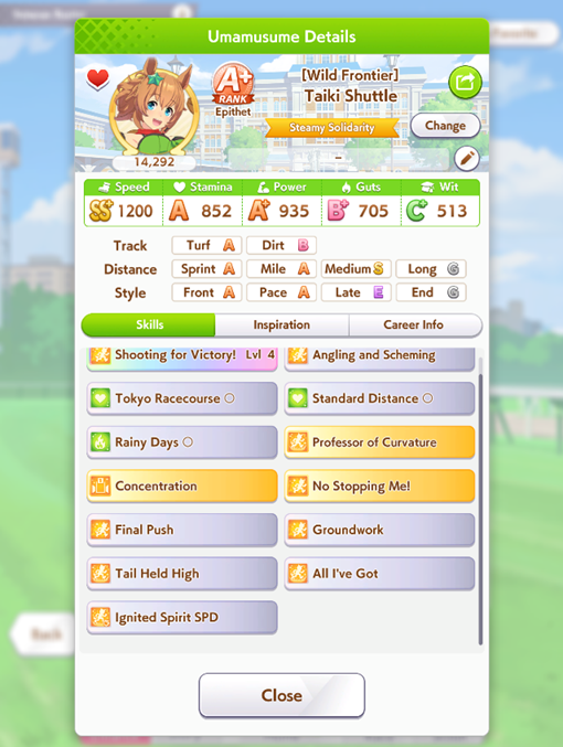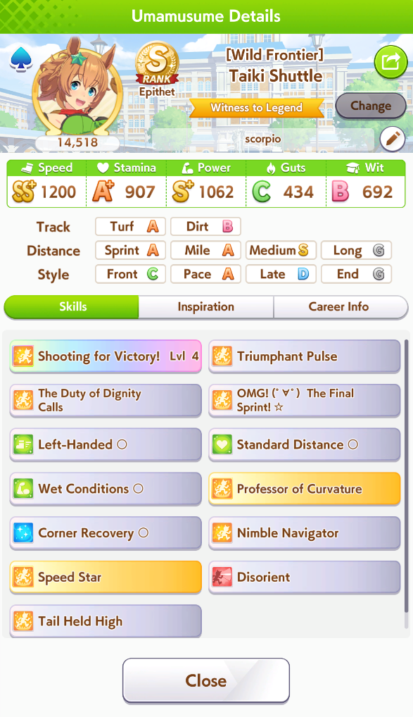 >>551064758I have a lot of 9*s, but not distance-specific parents with high distance sparks + useful skills. Most of my parents are from ace runs too, so they have shit affinity.
