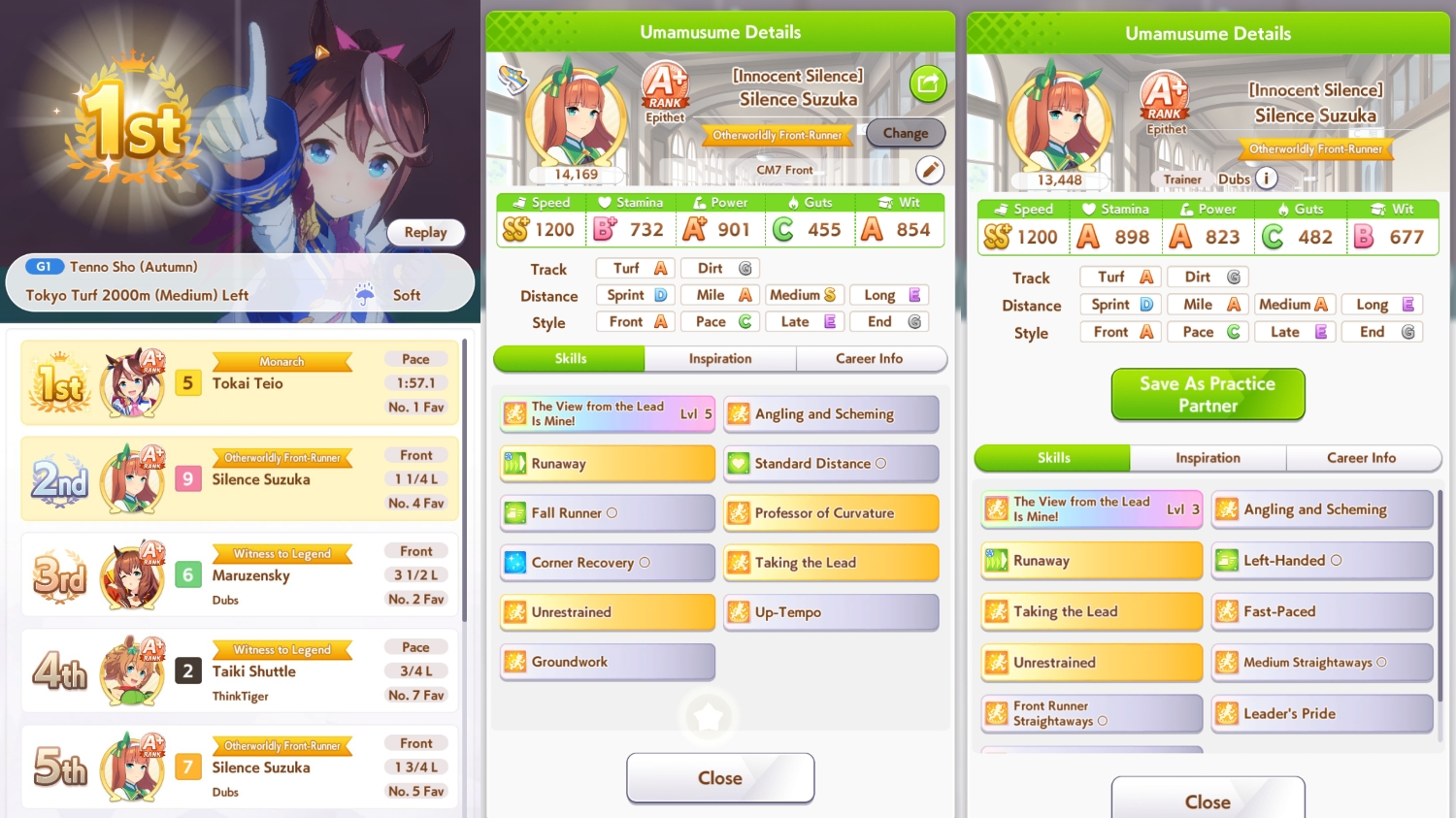 Just learned that Suzuka can survive in lobbies with multiple runaways if she never spot struggles at all. My Suzuka's lead in the start was too great for the other runaway to catch up and struggle, so she managed to survive the entire late-race and get 2nd.
