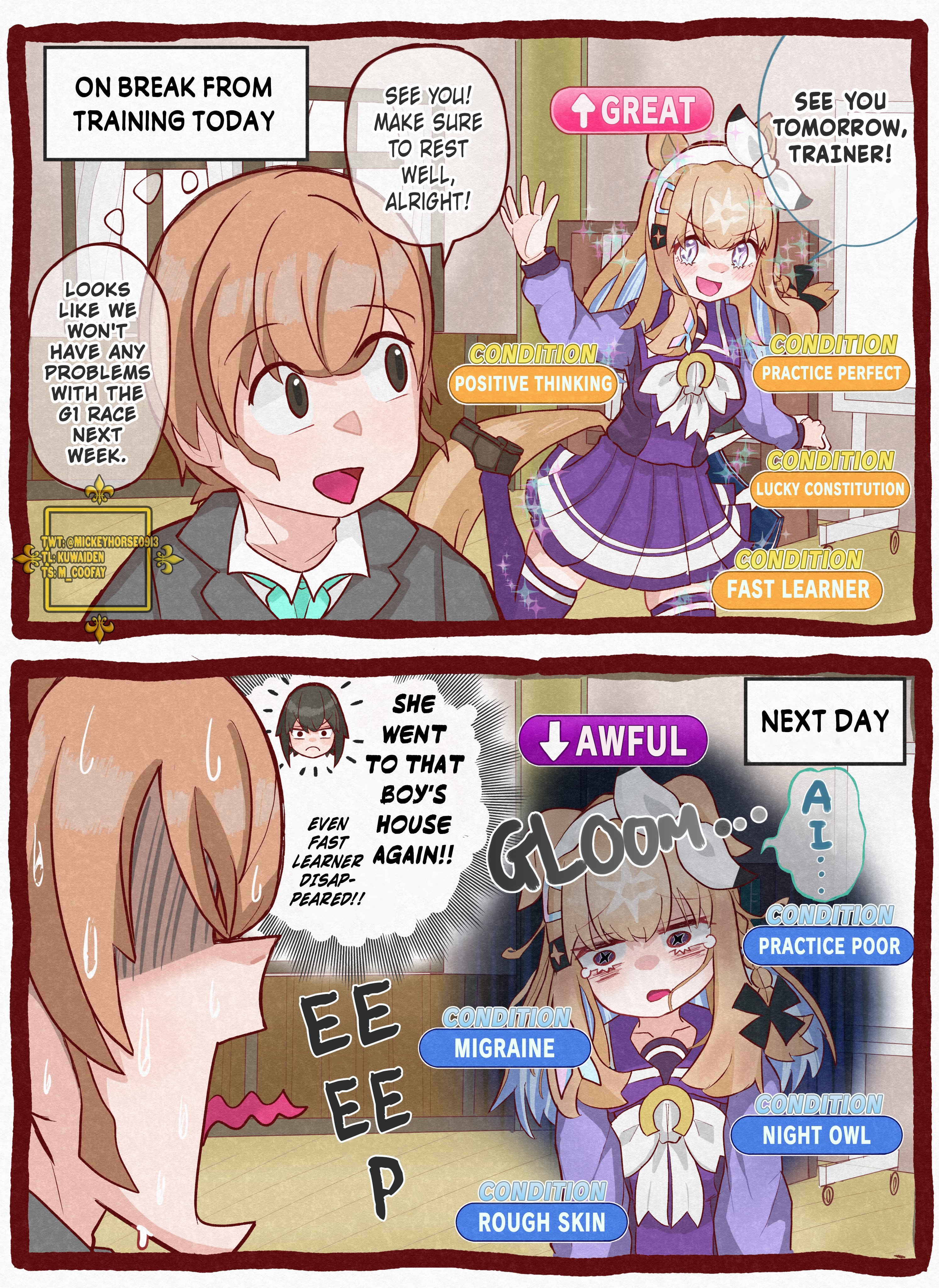 I'm still salty that TM Opera O has no Legend-Changer vocal. I know that Legend-Changer voice is for Umas that make breakthrough instead of solely based on their wins, because Seeking The Peal and that bum Sirius wouldn't get it if so. But when I see Stego getting one I was like why though? Turns out that she's the first actual Japanese horse that won a G1 overseas, because both Seeking The Pearl and Taiki Shuttle were american bred. But still undefeated for entire year while racing in the highest level is quite an achievement you know, also the first senior triple crown. Cygay criteria is so inconsistent because regular triple crown like Brian gets one but nothing for Still in Love the triple tiara.https://youtu.be/jVIQ3CTxB0g
