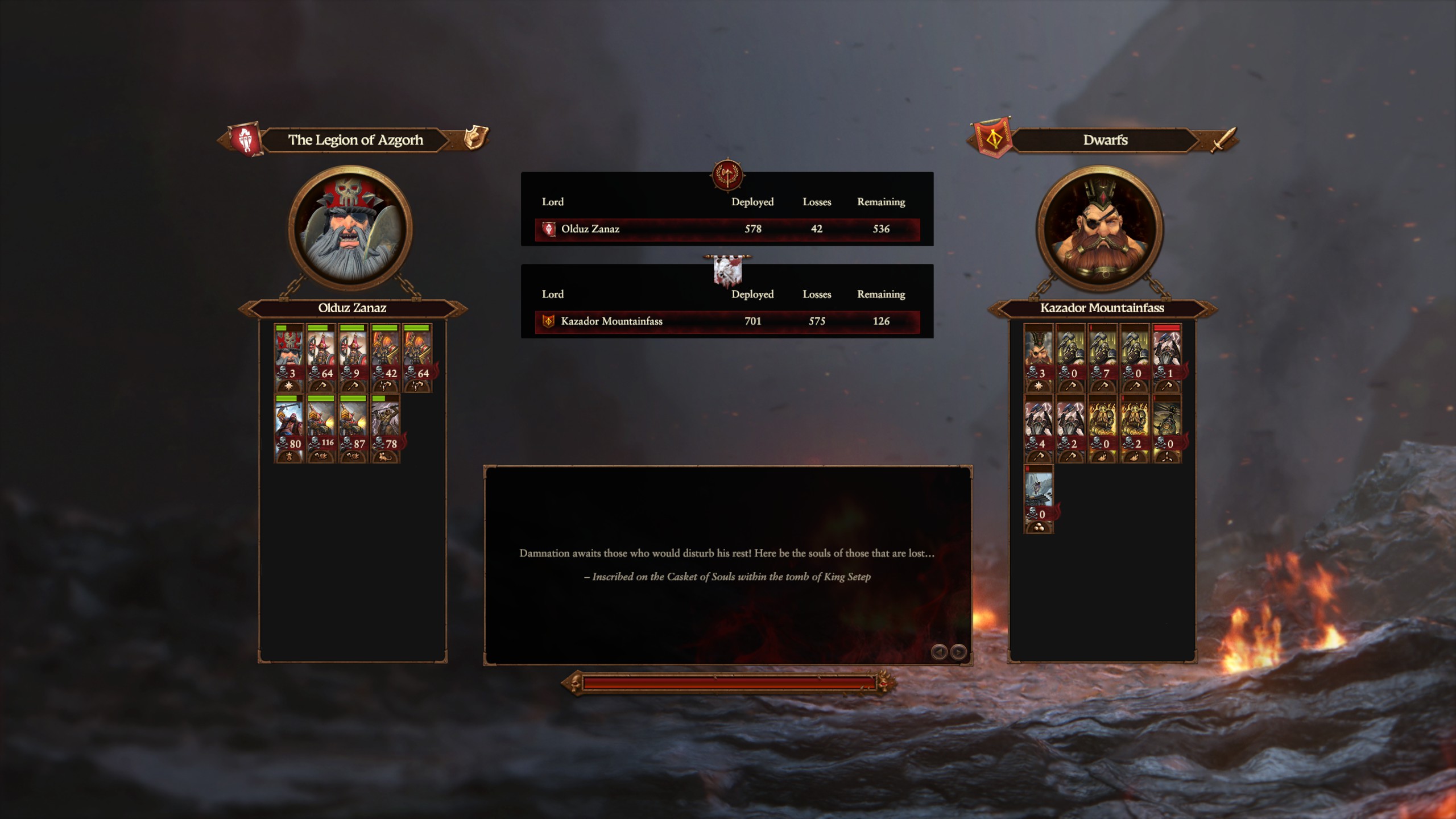 >>551147776They're basically the same with a few effect differences.Astragoth buffs Bull Centaurs and helps with the Tower of ZharrDrazhoath buffs K'daii and makes armament upgrades/cap increases cheaperZhatan has an extra convoy and recruits artillery for cheap.You heard that right. Not a single one of the LL's has a faction effect that buffs the actual Chorf infantry. That's because they're pound for pound the best infantry in the game.