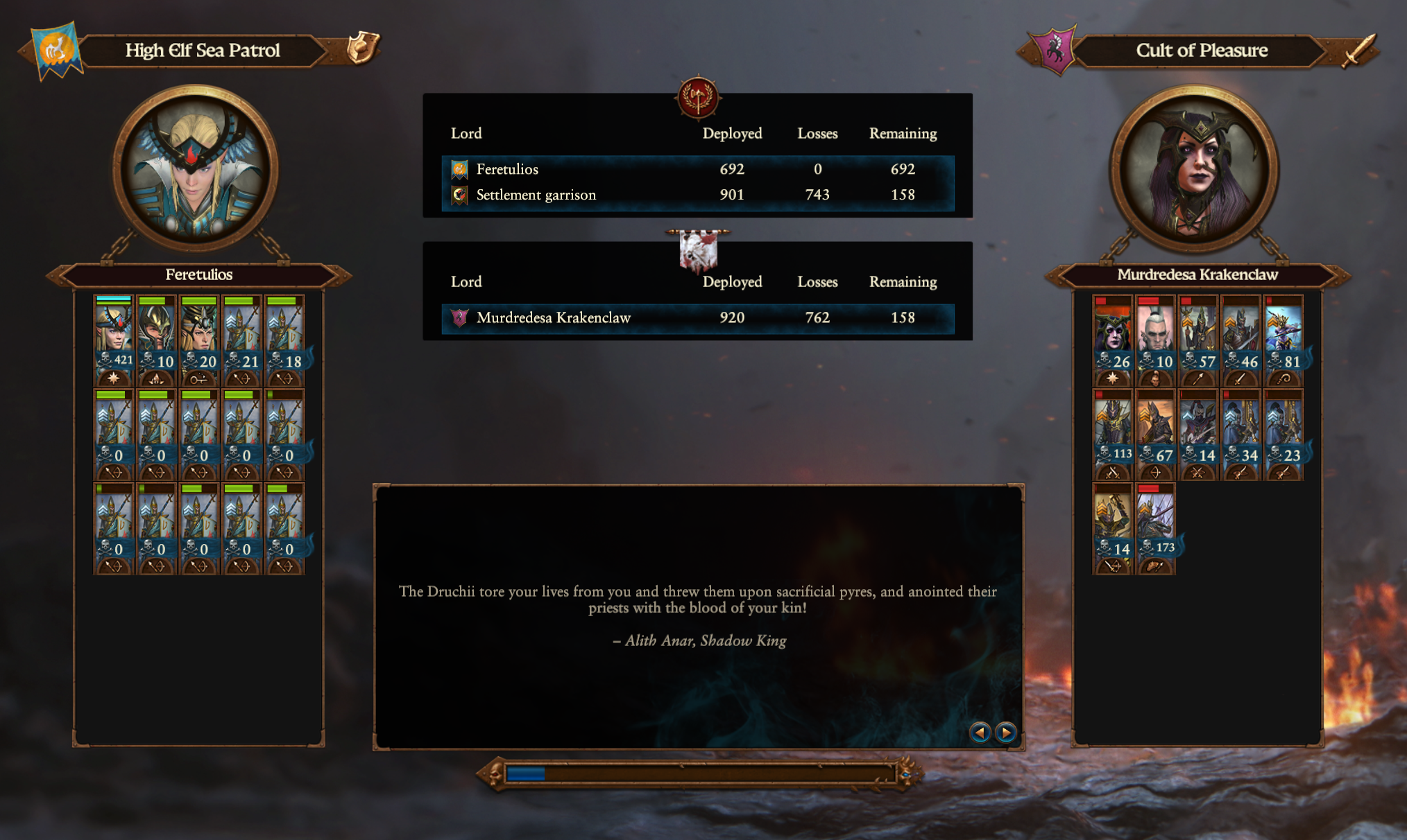 >>551139974>LL vassals are infinitely strongeroh I just confederate those by force, I spent the first 30 turns just going north west until I reached Deadwood.I only have a bunch of random norsca and Hag Graef. That might be an LL faction, not a dark elf expert.