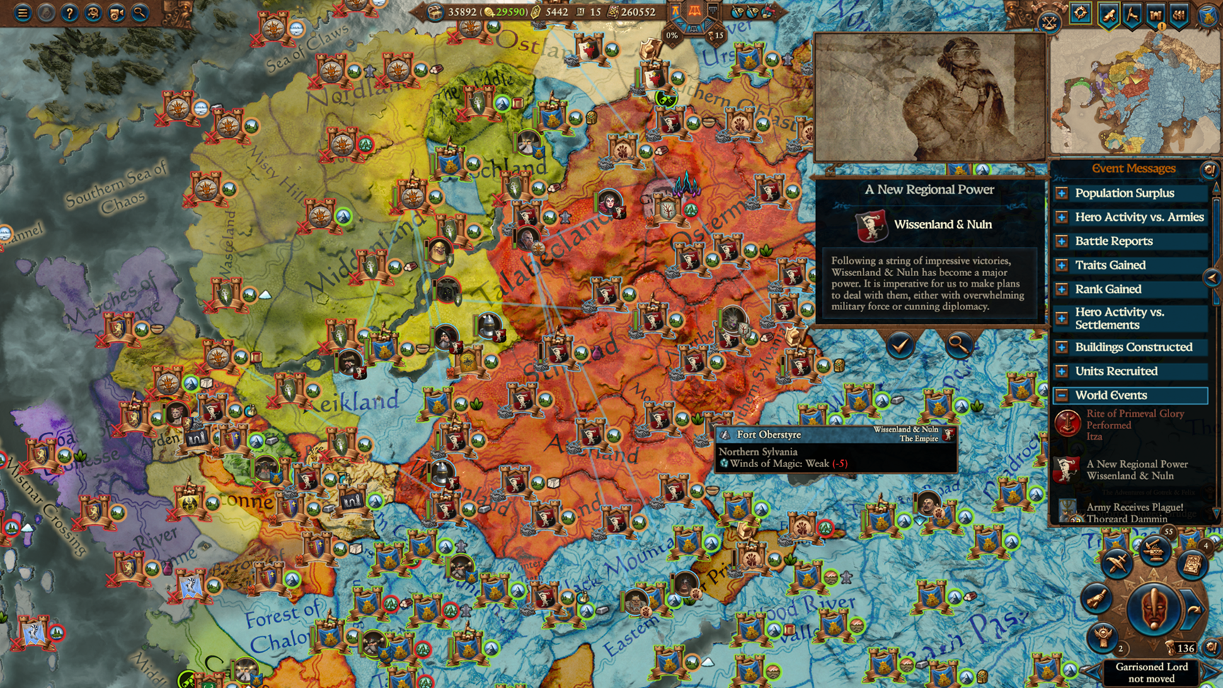 After cleaning the entire east, finally came back and decided to prop up wissenland, they confederated two of the other empires real quick and look at that already becoming a regional superpower. Bretonnia got all angry cause the wood elves decided to FAFO but trading settlements seems really OP