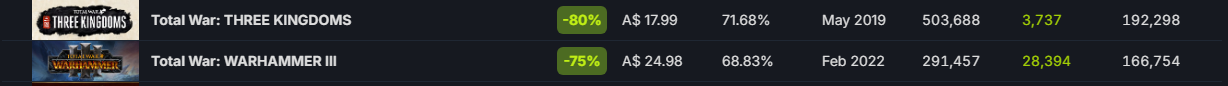3k has a higher peak than all the wh games FUCKING KEK wh nerds need to neck acting like wh is the most successful total war game when its really 3k