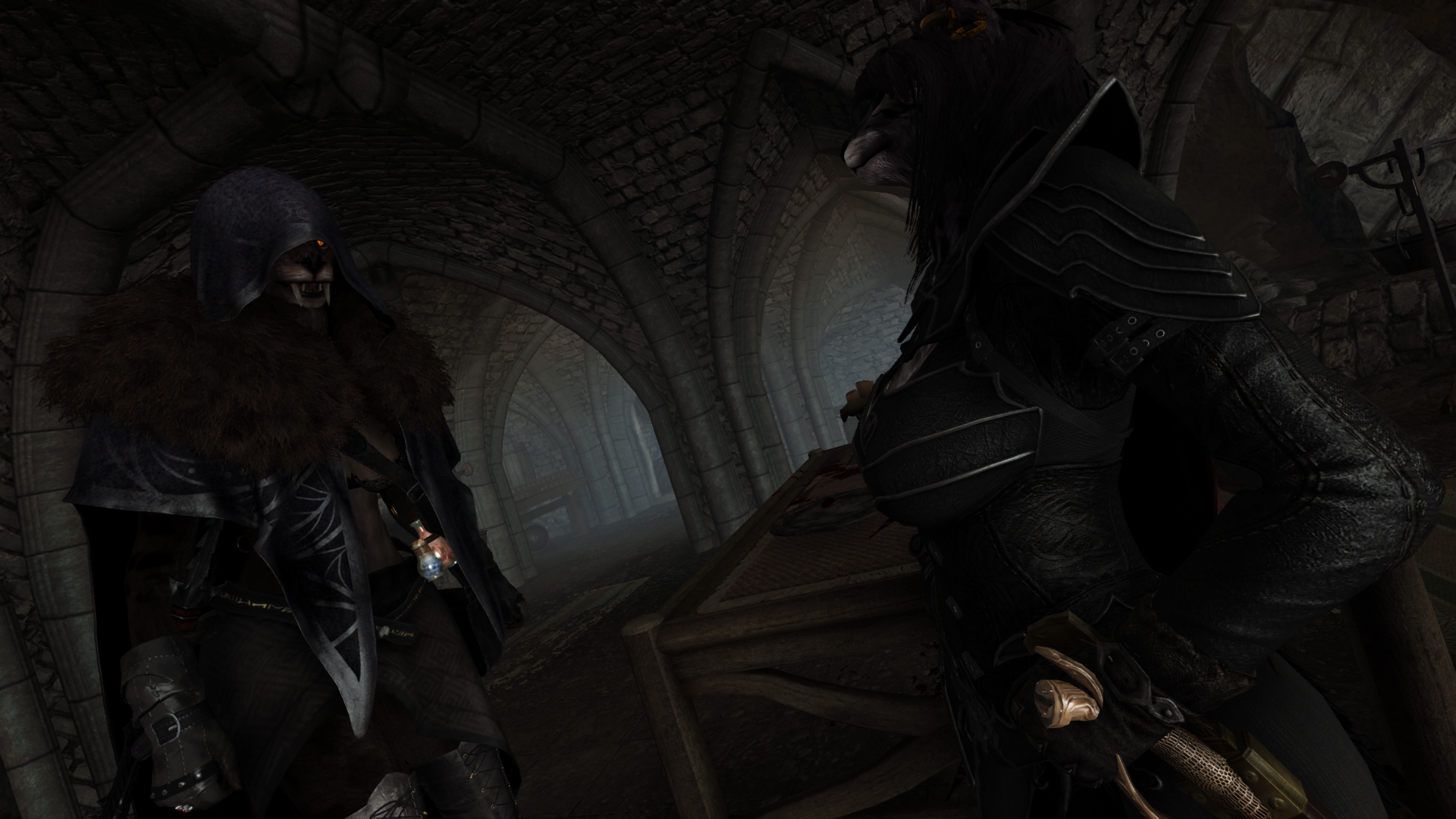 >>551085548That Khajiit from Whiterun's Hall of The Dead or another one? She was naked.