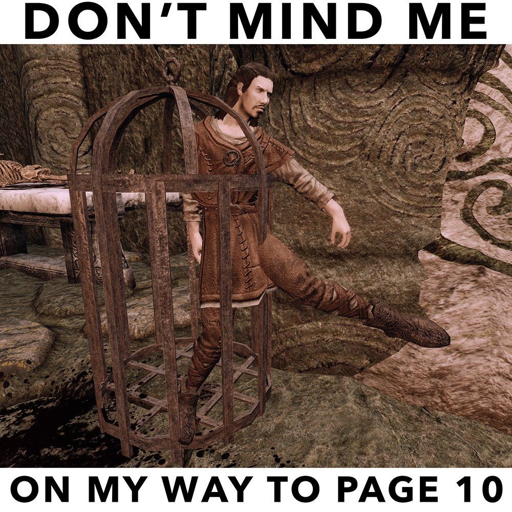 >bandit does the aggro animation behind a locked iron gate>keeps telling me I never shouda come here and that she'll enjoy looting my corpseI need to detox from 4chan, /tesg/ has CHIM'd itself into my playthrough