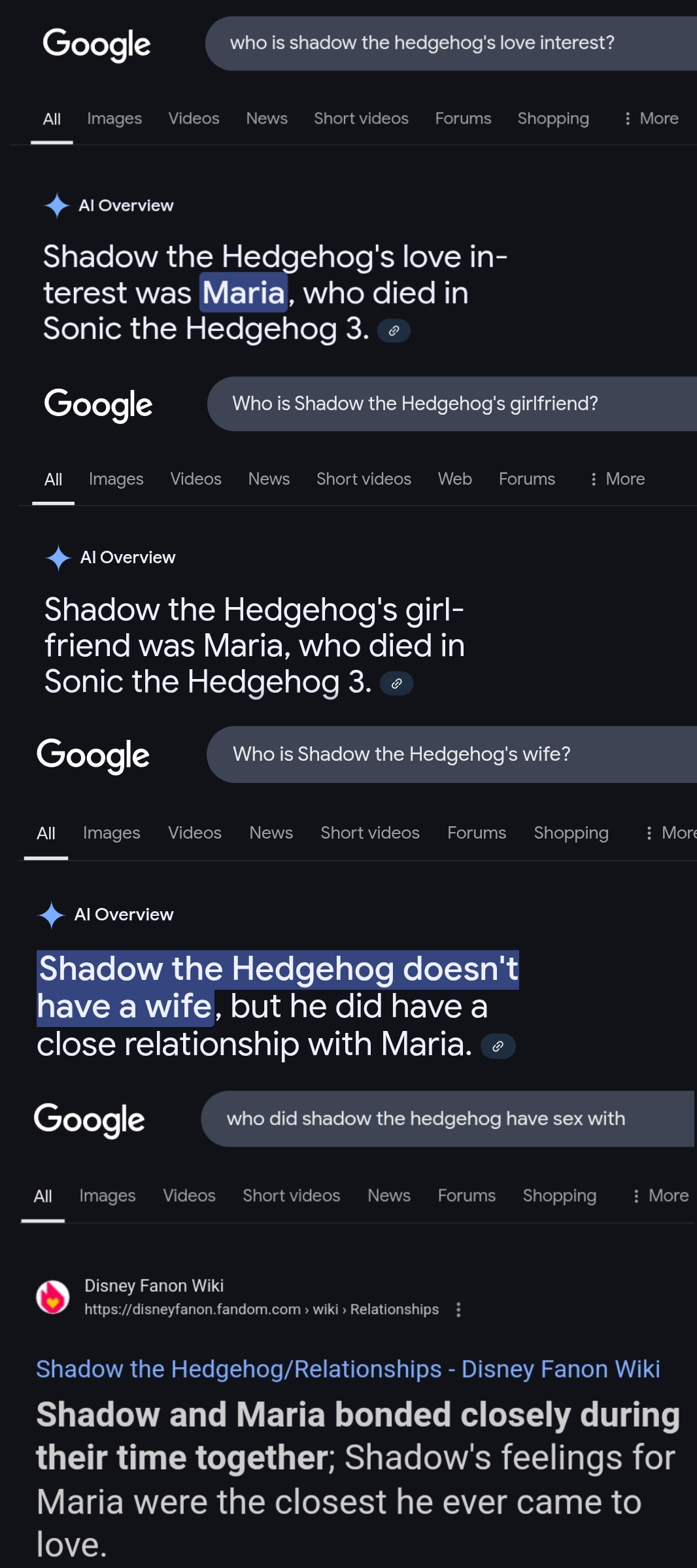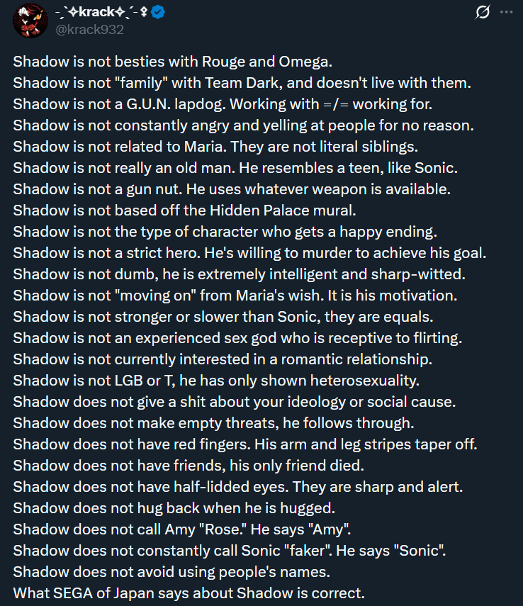 >>551084848Shadow loves MariaRouge loves KnucklesThis is the official stance from SegaStop spamming your ooc headcanon
