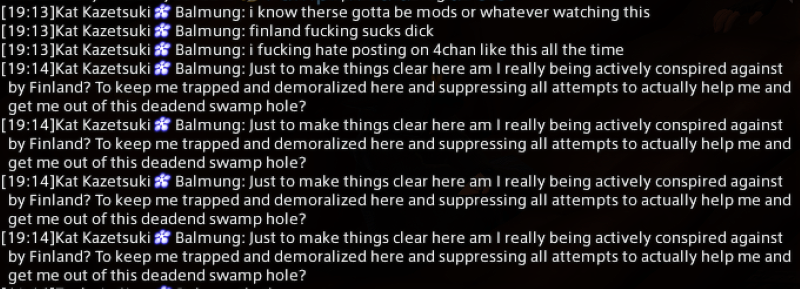 >>551108915i am naturally civil. bigots are not. i belong in said hypothetical space. bigots do not.i do not belong in a bigoted space and must mask who i am while there or face backlash.ffxiv is a non bigoted space, meaning bigots do not belong.glad this could be cleared up.>>551108921more bigot gymnastics. you are in the minority, you are tired of receiving backlash for being vile and unlikeable and bigoted. this is not normal, and it is not welcome in ffxiv where you do not belong.it's possible you could change in theory, exposure therapy would help, meeting the majority of whatever group you have misplaced phobia of, but for most bigots growth is simply something impossible.until that growth happens or let's be real doesn't, enjoy trespassing in ffxiv.