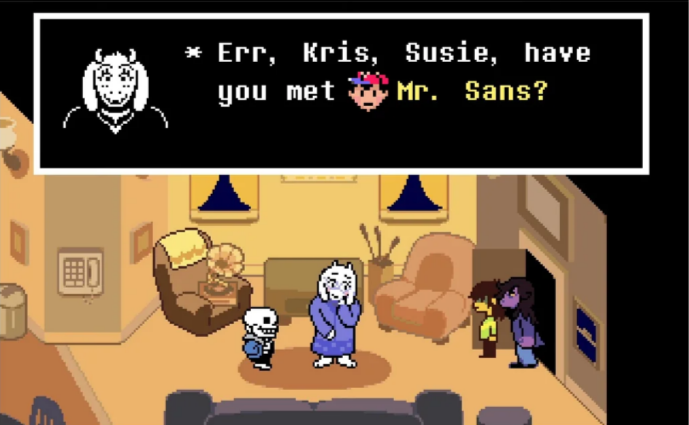 >Dess when she Toriel invites her to babysit Kris