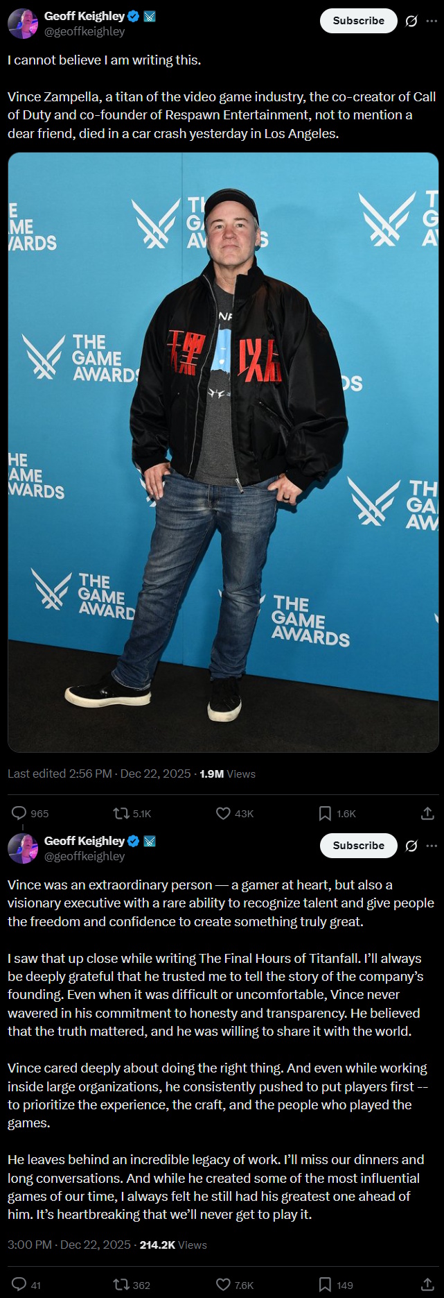 I liked Battlefield because if you can't do well shooting you could always have fun passing out ammo and repairing tanks instead.Anyway this death feel prescient because arcade shooters are so damn hard for AAA studios to NOT FUCK UP in 2025 and Vince seemed like one of the few people left in the industry that was honest about it...