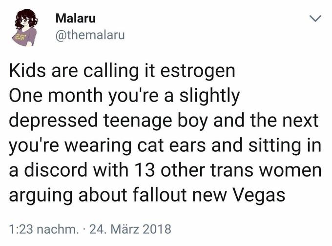 >>551158237>Why does NV attract trans folk so much?Fallout New Vegas is the perfect virtual outlet for the accumulated trauma of modern trans experience. (Speaking from a transfeminine perspective but I’d imagine much of this applies to other trans people as well) You can make a character, (including gender) fight against regressive facists, (Caesar’s legion) and meet plenty of other LGBT people along the way that are actually well rounded characters Most of the LGBT people in this game, you wouldn’t even know they were LGBT unless you took the time to talk to them and get to know them. Your character can be canonically gay or bi with the use of certain perks too! Most importantly, the world and its major factions are ambivalent enough to be believable. Of course we hate the legion! They would kill us given the chance, but NCR isn’t perfect either... They exploit their workers, they’re xenophobic and imperialistic. House is a dictator just like Caesar, right? Well... maybe you hate autocracy, but House seems benevolent and has the best interest of humanity in mind. You could ultimately side with yourself and play God with the wasteland. Why not Even in this virtual world where we are allowed to be ourselves, for many of us much more than in the everyday world, we can also be Gods! People listen to us, our actions have meaning and consequences that feel plausible. That’s why I think trans people in particular love this game. Honestly it is a work of art that all should appreciate, but trans people through our heightened need for self integration just to justify and understand our existence, develop a greater appreciation of art. That is why trans people love New Vegas.