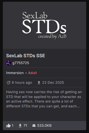 >>551153391literal bug chaser mod. who would want something like this? "muh immersion", nah no thanks
