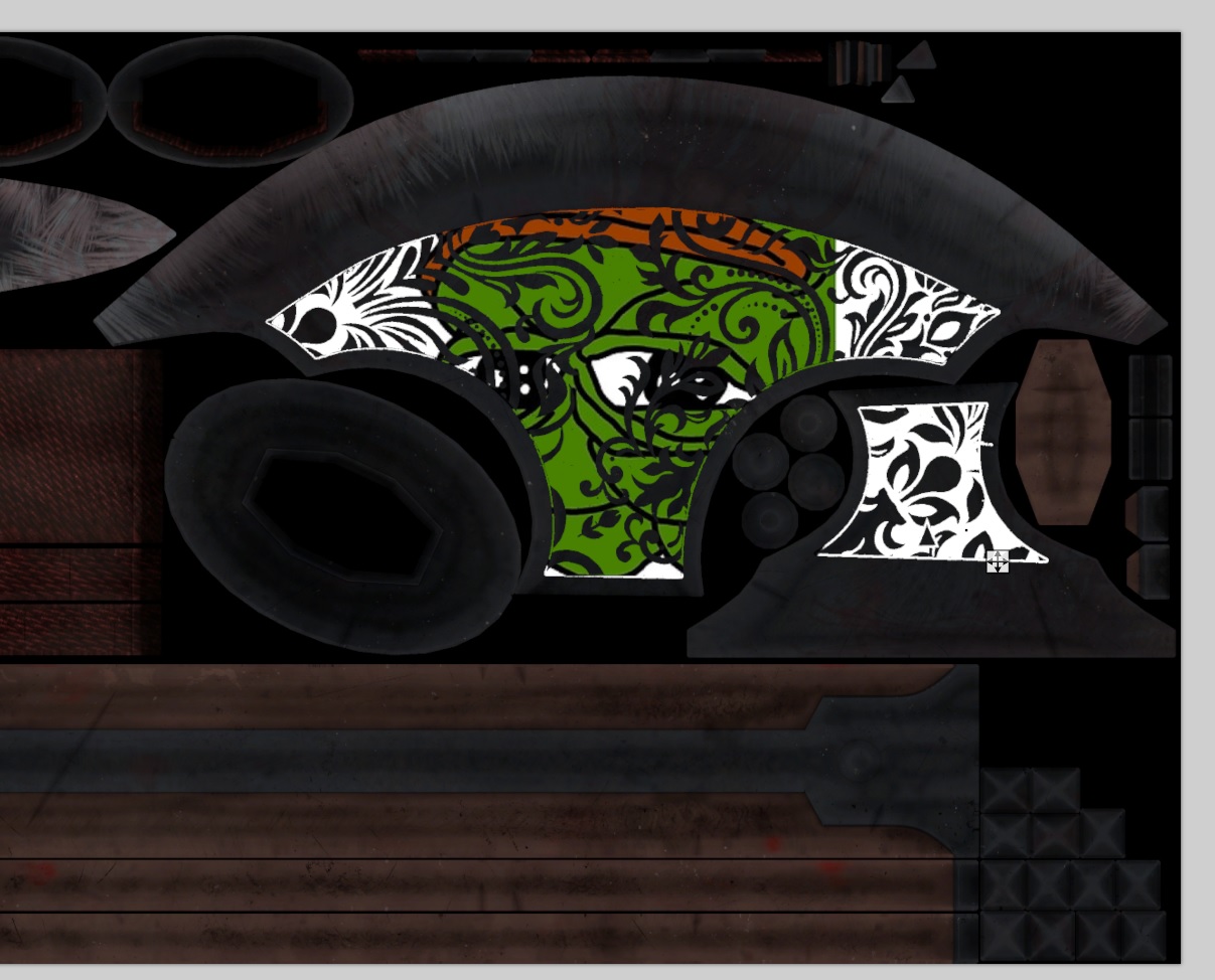>>551184765>I don't supposed it would be as easy as putting a new flat metal texture over the original file.you would be better off installing something like Photoshop, or at least Paint.NET or Gimp, opening the diffuse texture to see what's what and if it's a good UV map, you should be able to select and cut out the original metal parts and insert whatever you want to insert into the hole